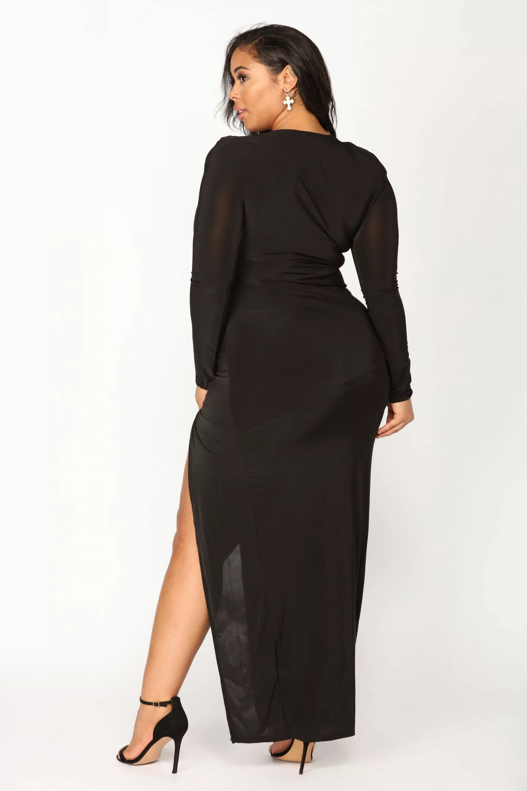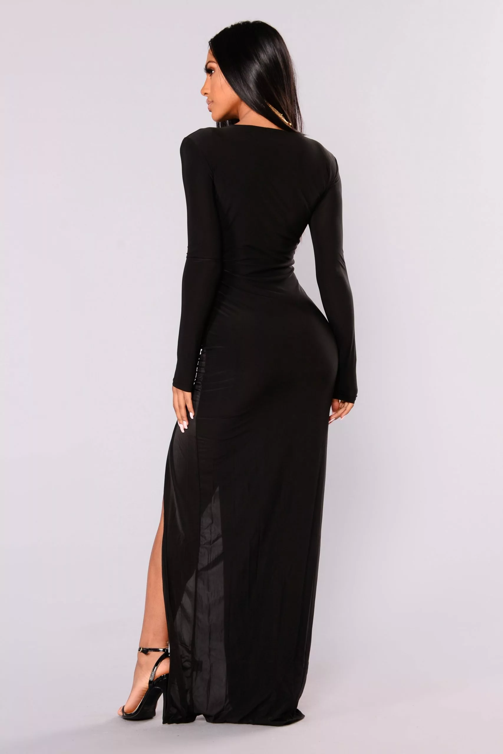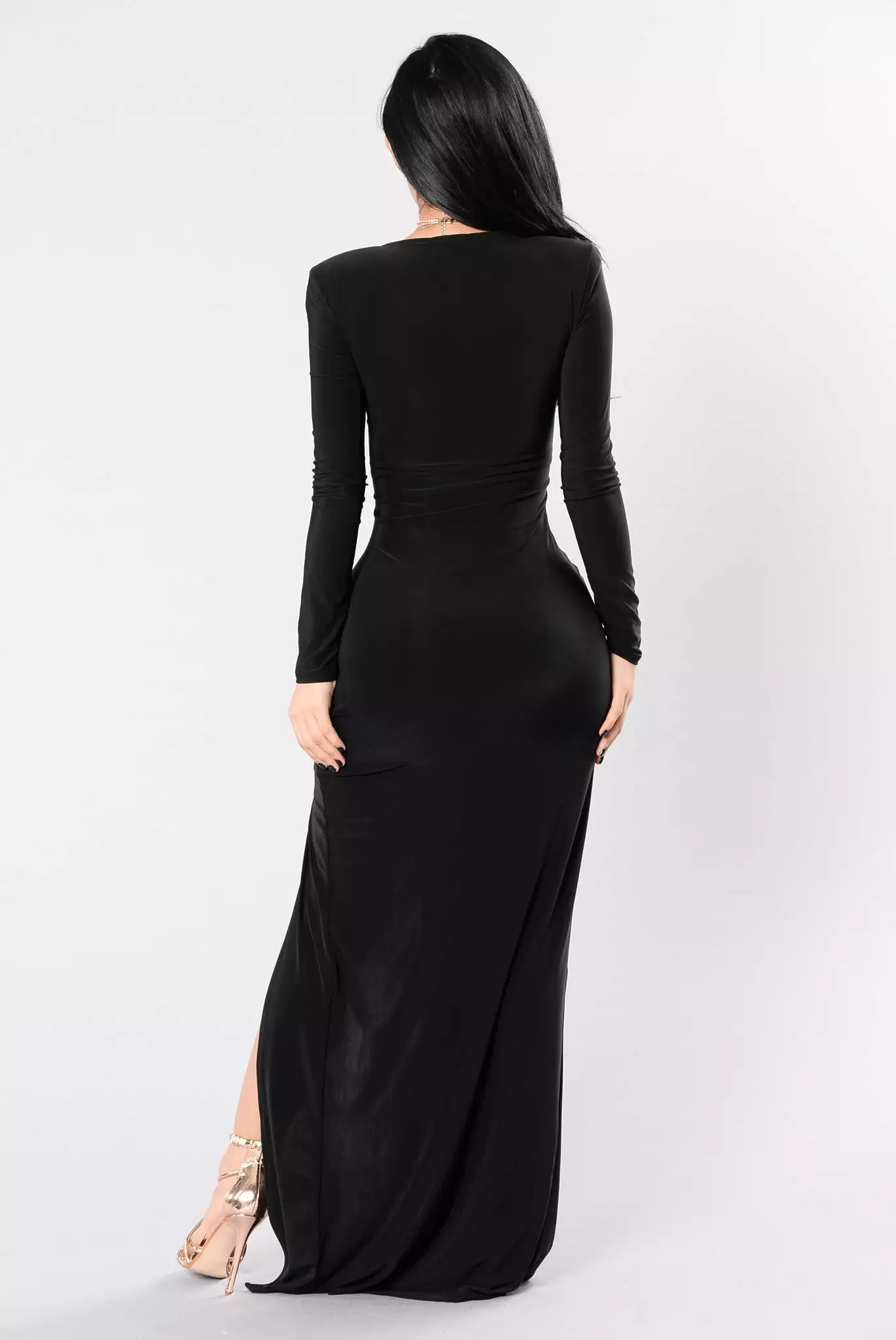 A magician never reveals her secrets. Our Love Sex Magic Dress in Black features a ruching detail that will hide what you hate while it flaunts what you love, a deep V neckline, light shoulder pads and a thigh-high front slit that won’t quit.