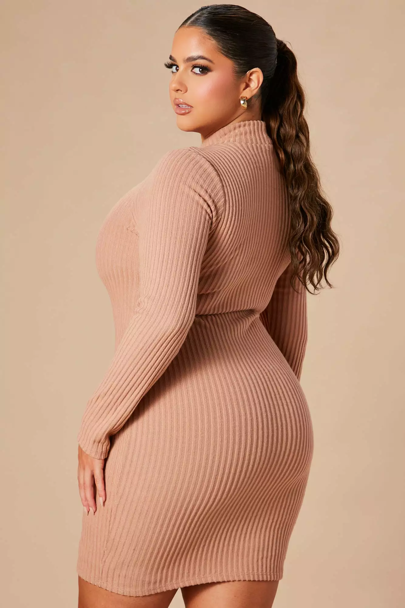 Fashion Nova Make A Move Mock Neck Mini Dress – Nude