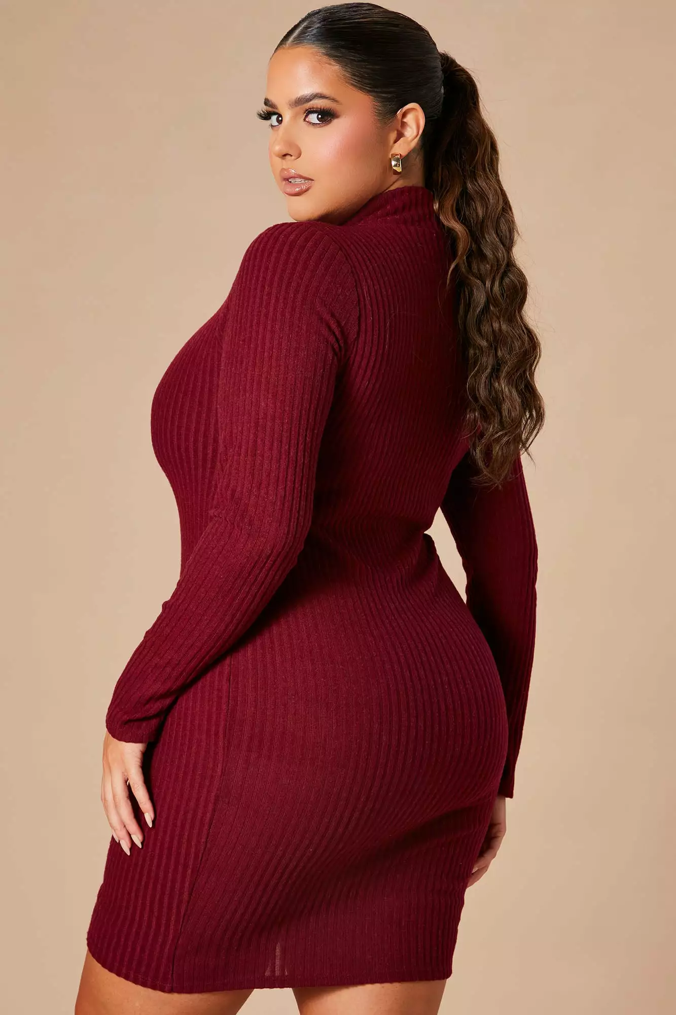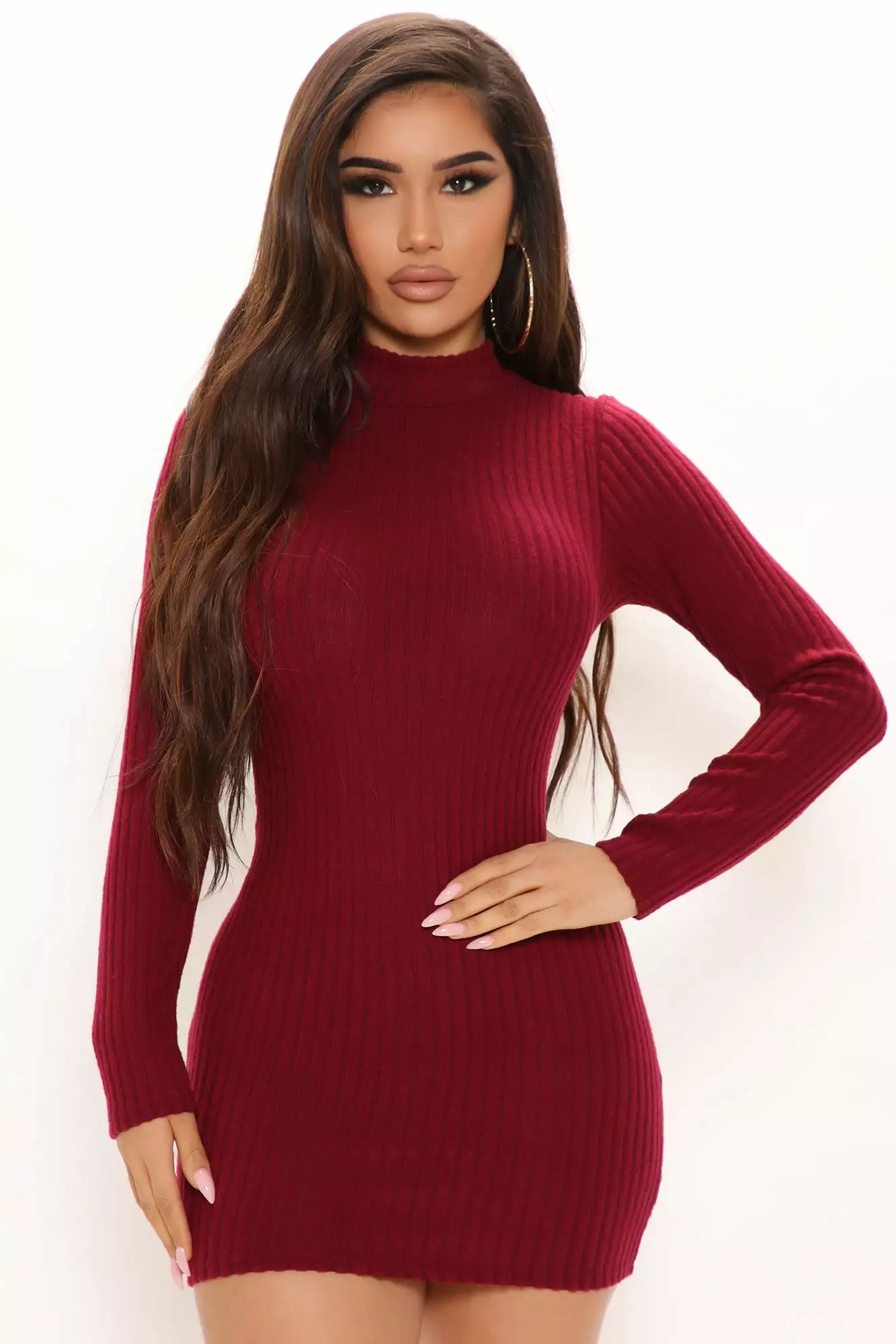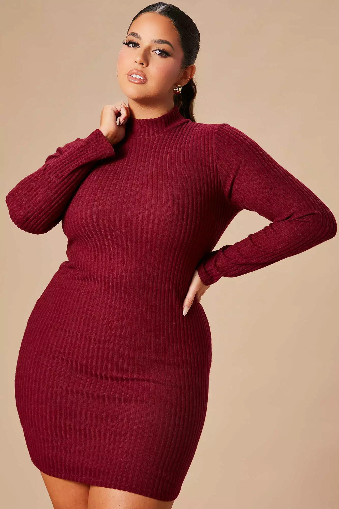Fashion Nova Make A Move Mock Neck Mini Dress – Wine