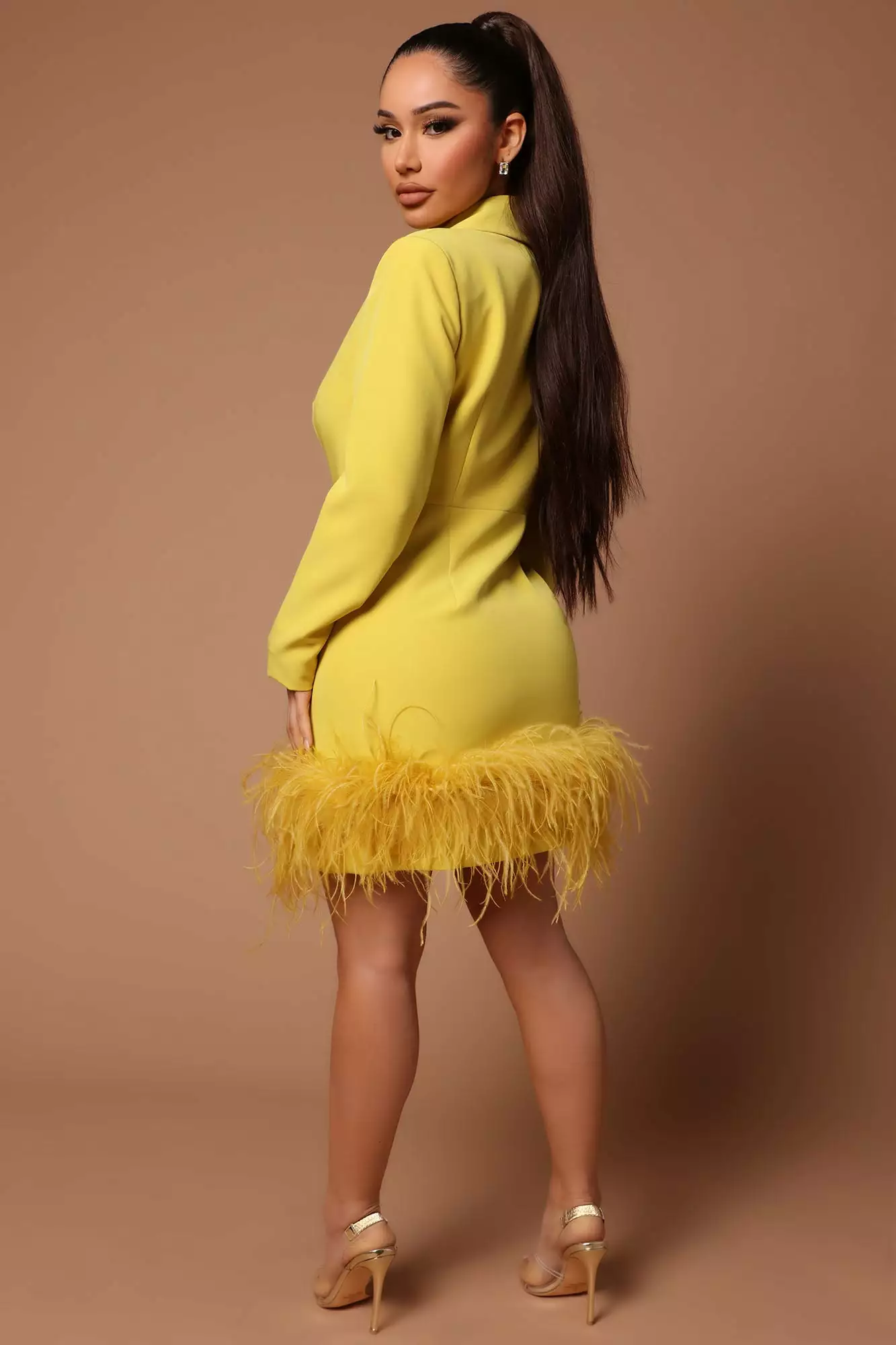 Fashion Nova Makena Feather Blazer Dress – Chartreuse