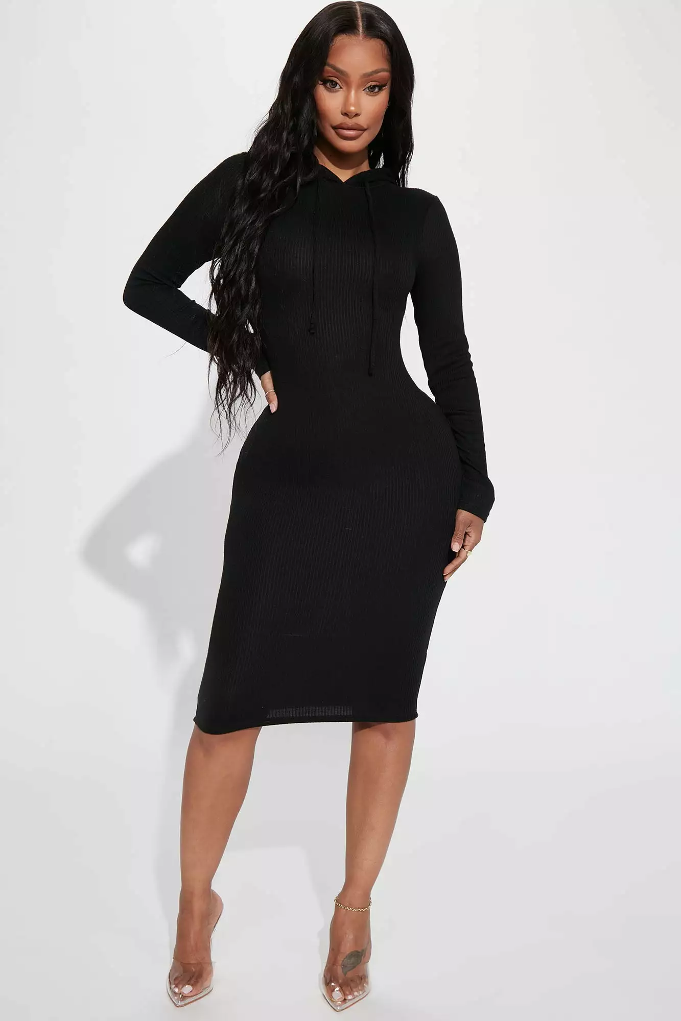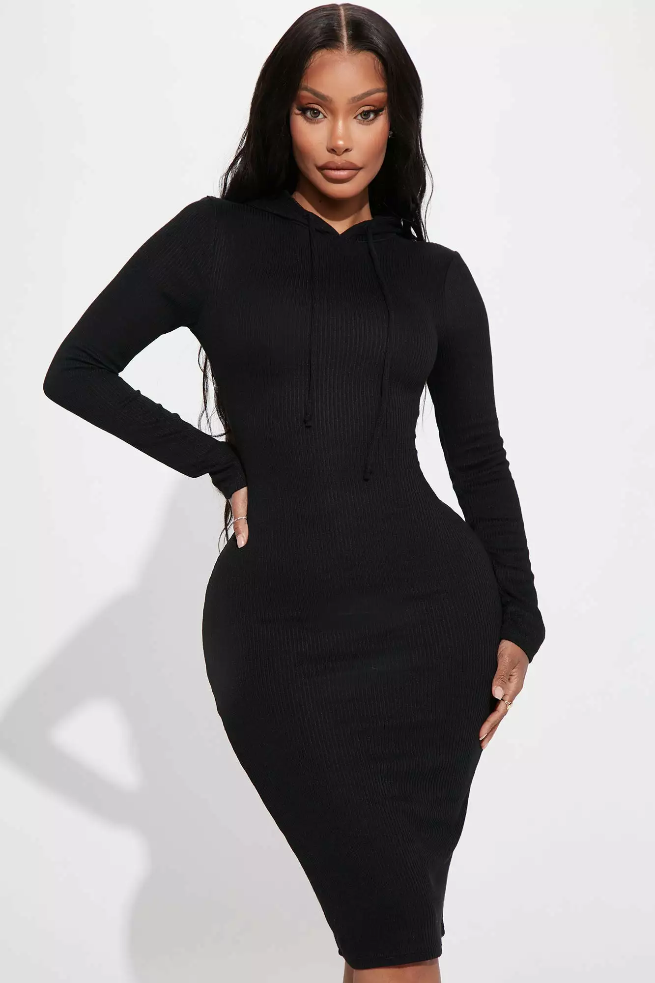 Fashion Nova Mallorie Ribbed Midi Dress – Black