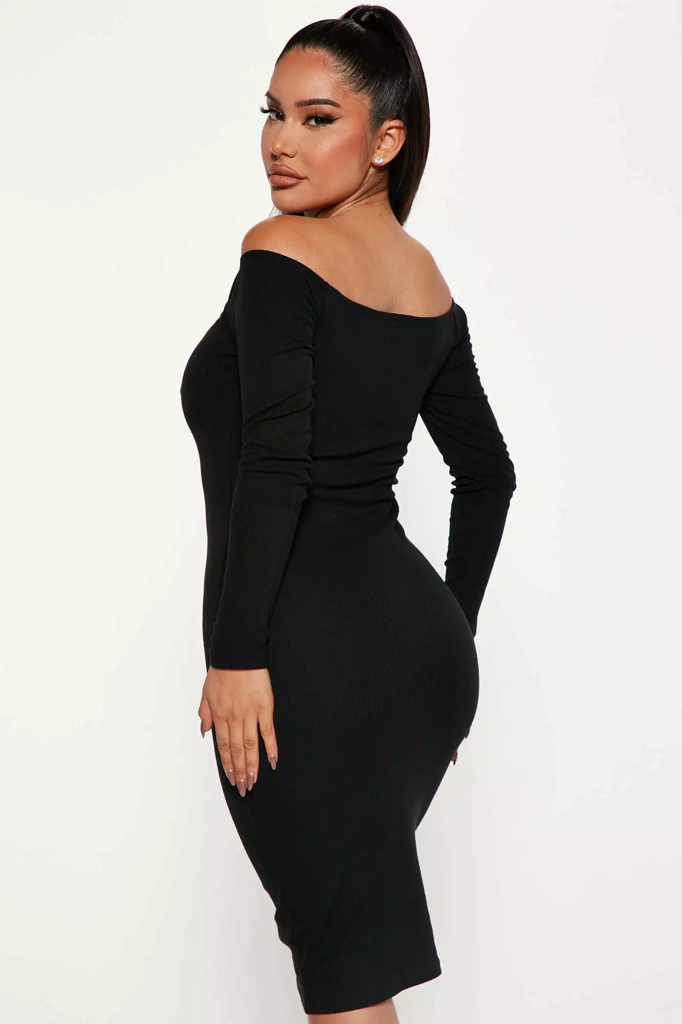 Fashion Nova Mariella Ribbed Midi Dress – Black