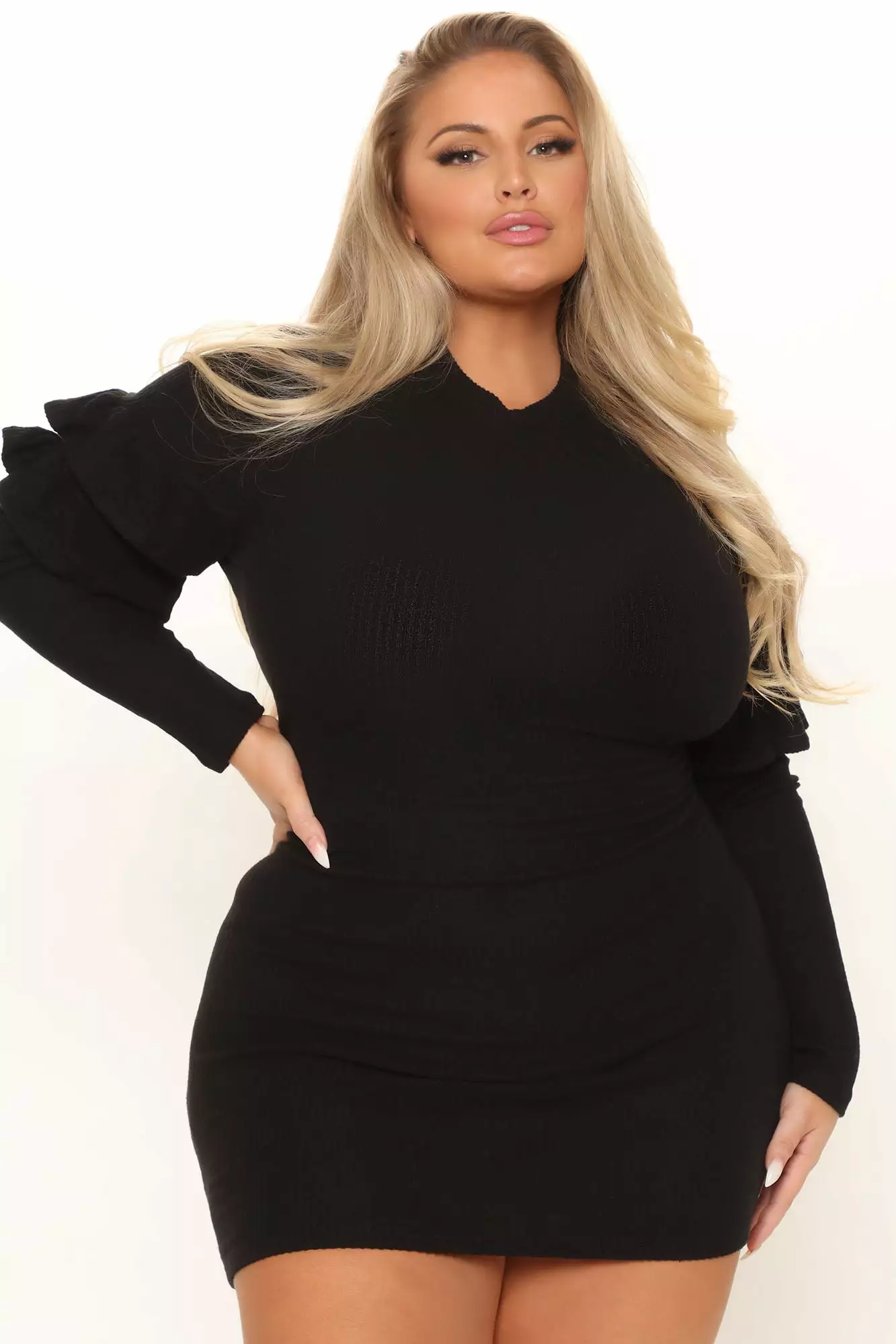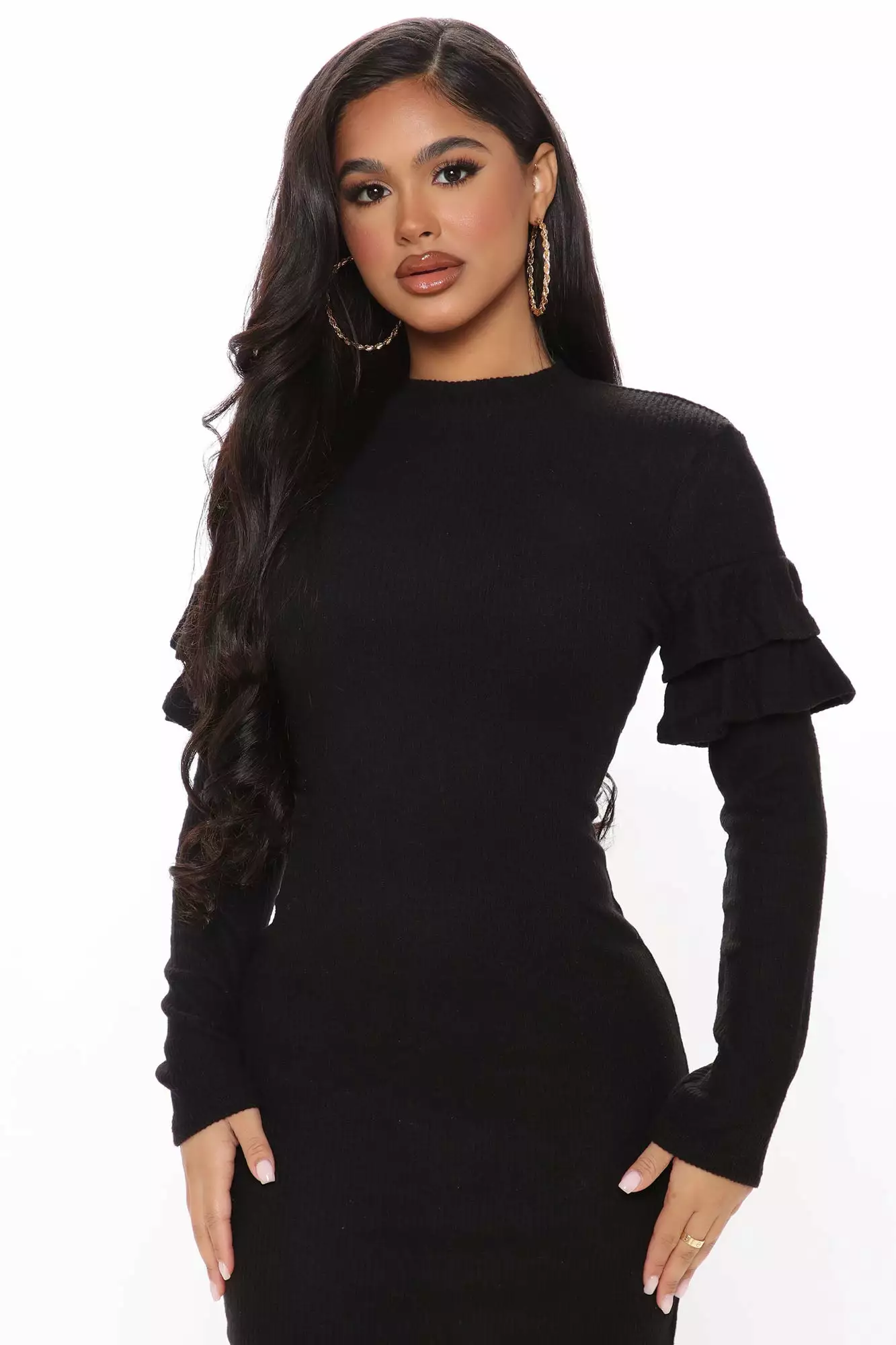 Fashion Nova Mauna Long Sleeve Mini Dress – Black