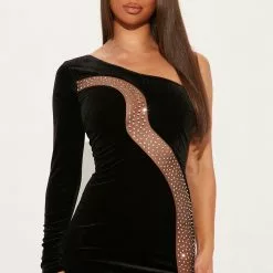 Fashion Nova Gina Embellished Dress – Black