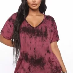 Fashion Nova The New Comfort Tie Dye Maxi Dress – Burgundy