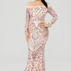 Fashion Nova Champagne Diet Sequin Maxi Dress – Bronze