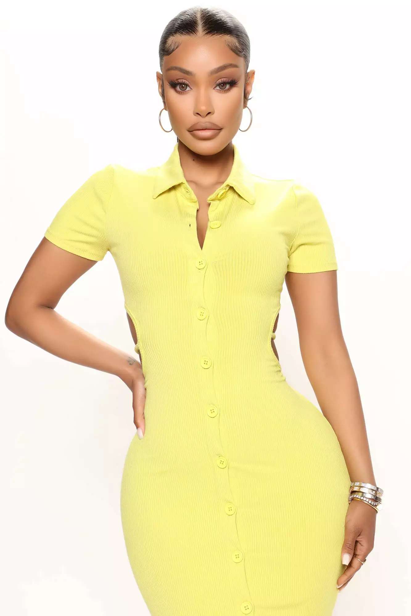 Fashion Nova Meet At Dolce Ribbed Midi Dress – Chartreuse