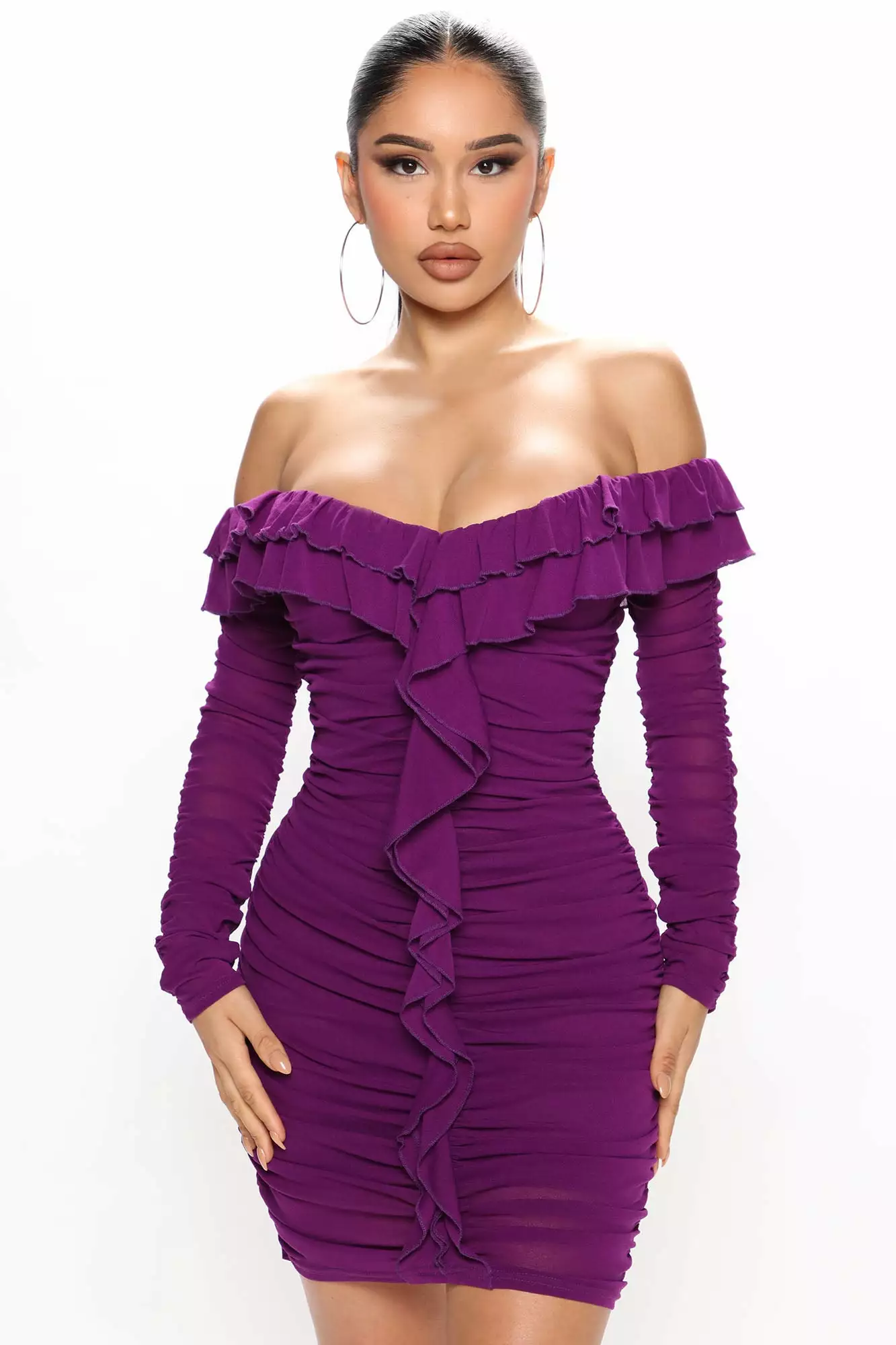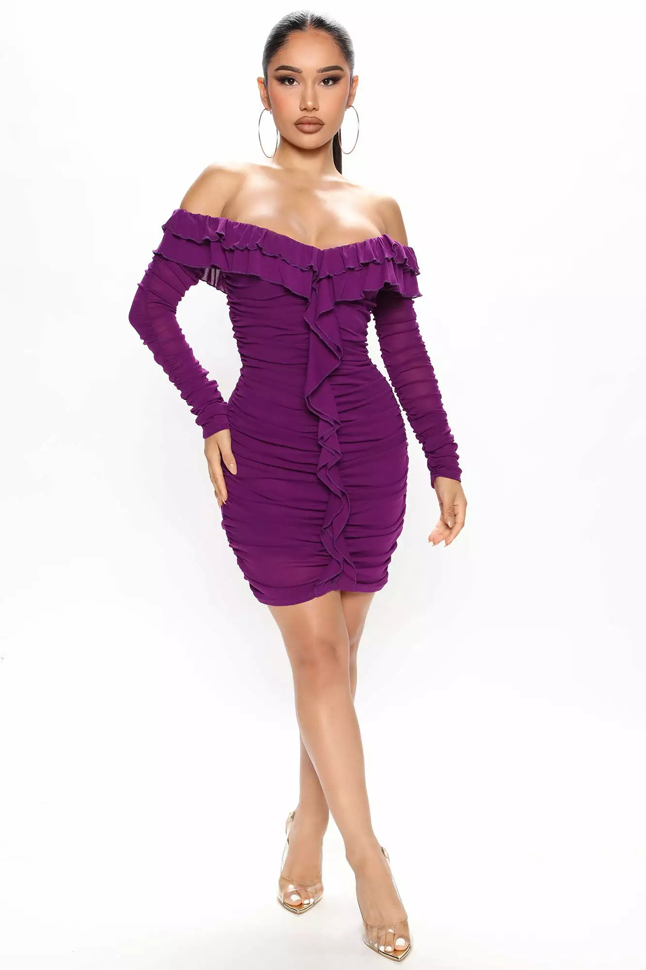 Fashion Nova Melisa Mesh Mini Dress – Purple