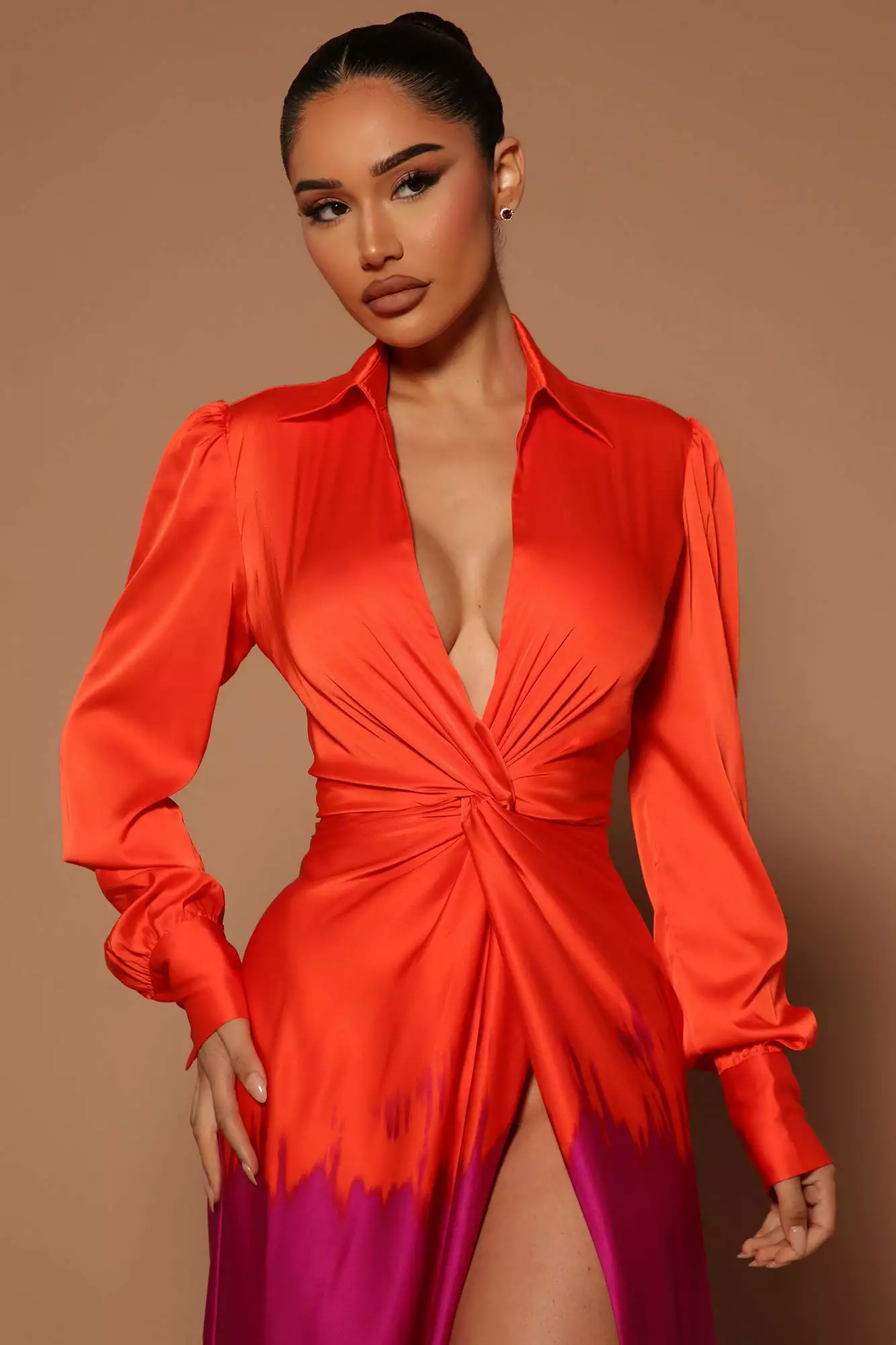 Fashion Nova Melissa Ombre Maxi Dress – Orange/combo