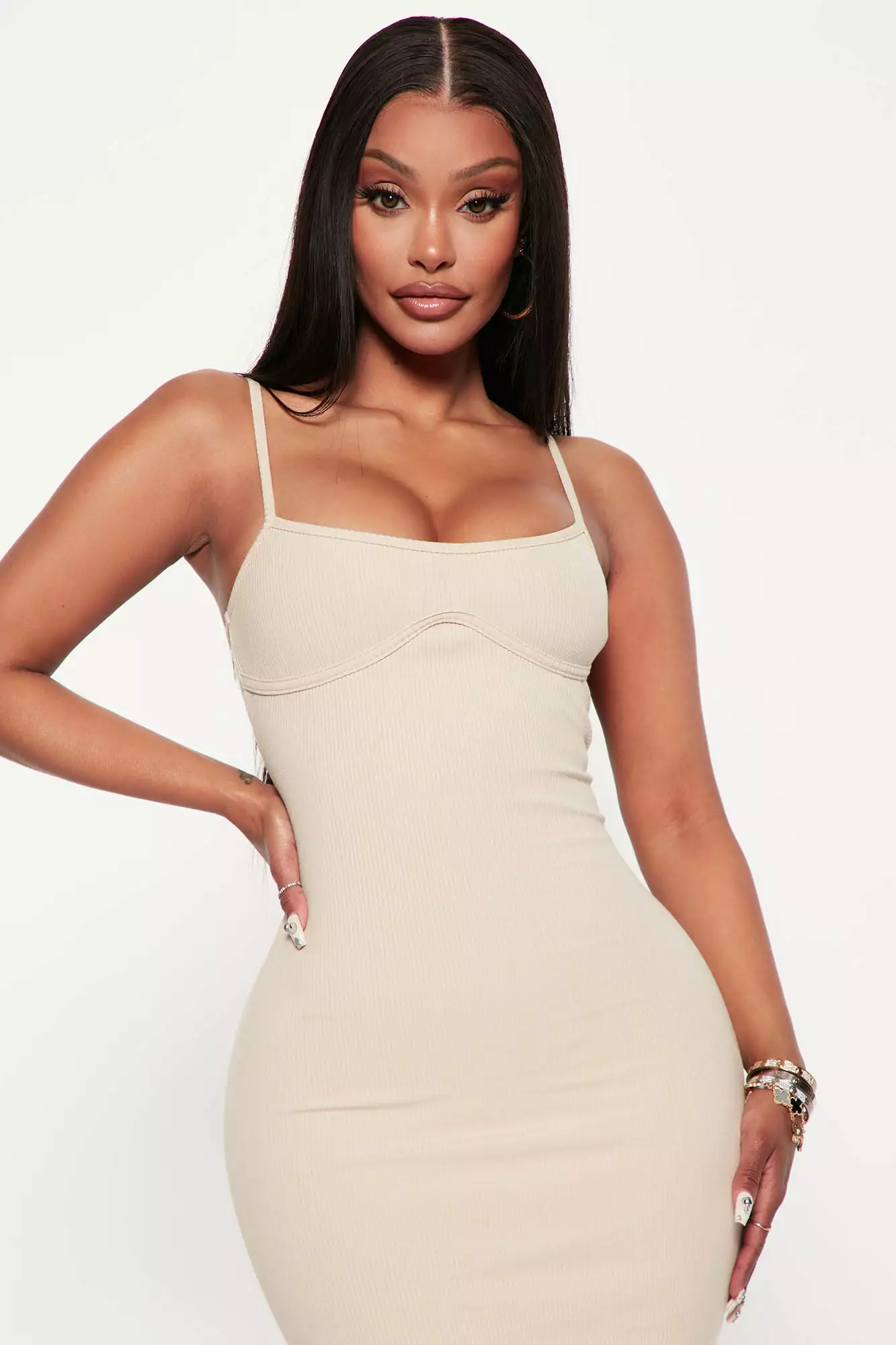 Fashion Nova Mercedes Snatched Midi Dress – Cream