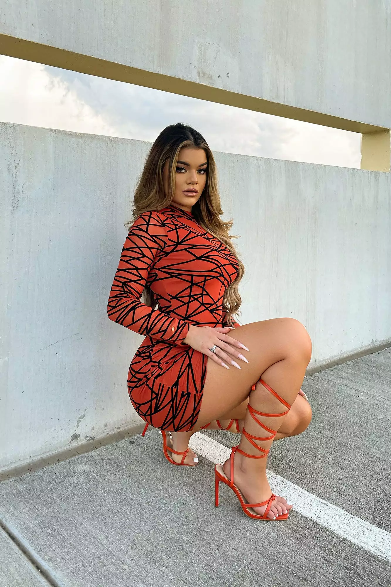Fashion Nova Mesh It Up Mini Dress – Rust