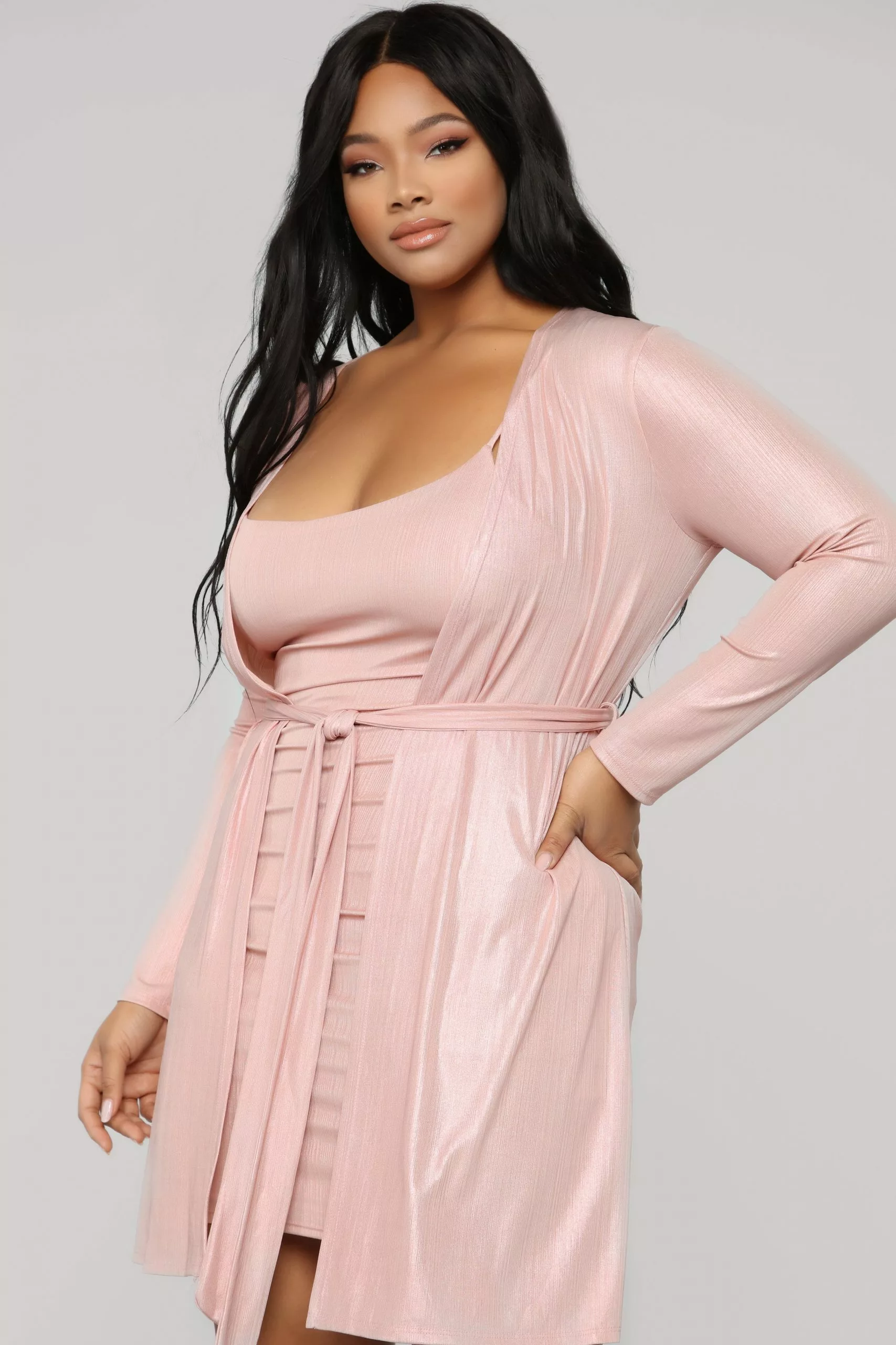 Fashion Nova Metallic Mami Dress Set – Pink