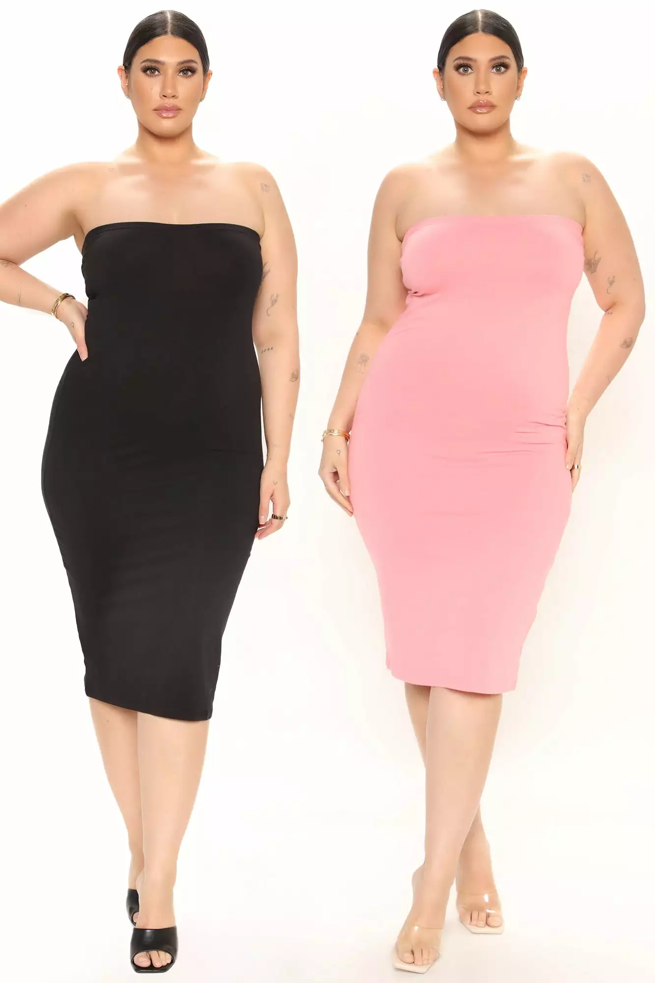 Fashion Nova Mia 2 Pack Midi Dress – Pink/combo