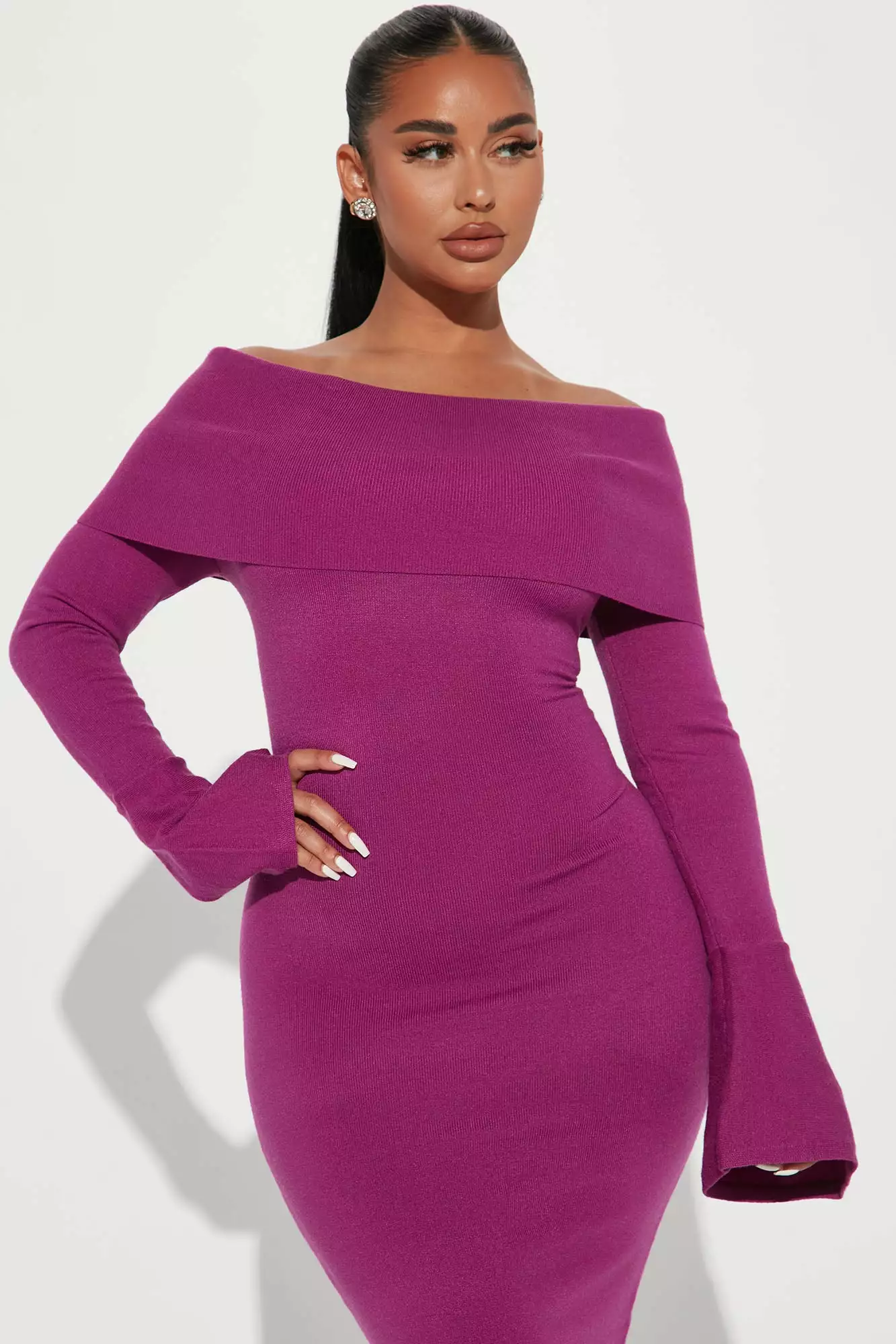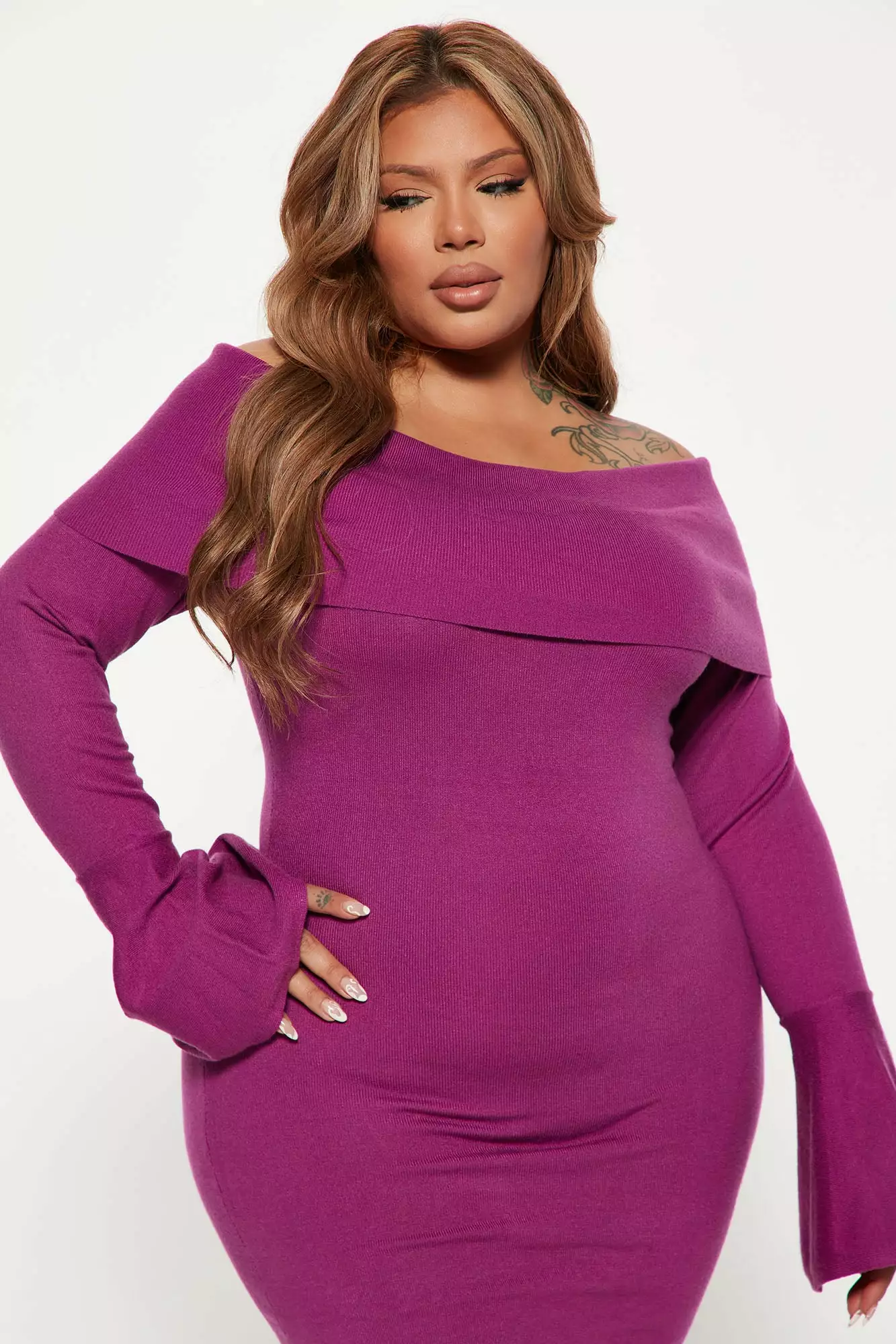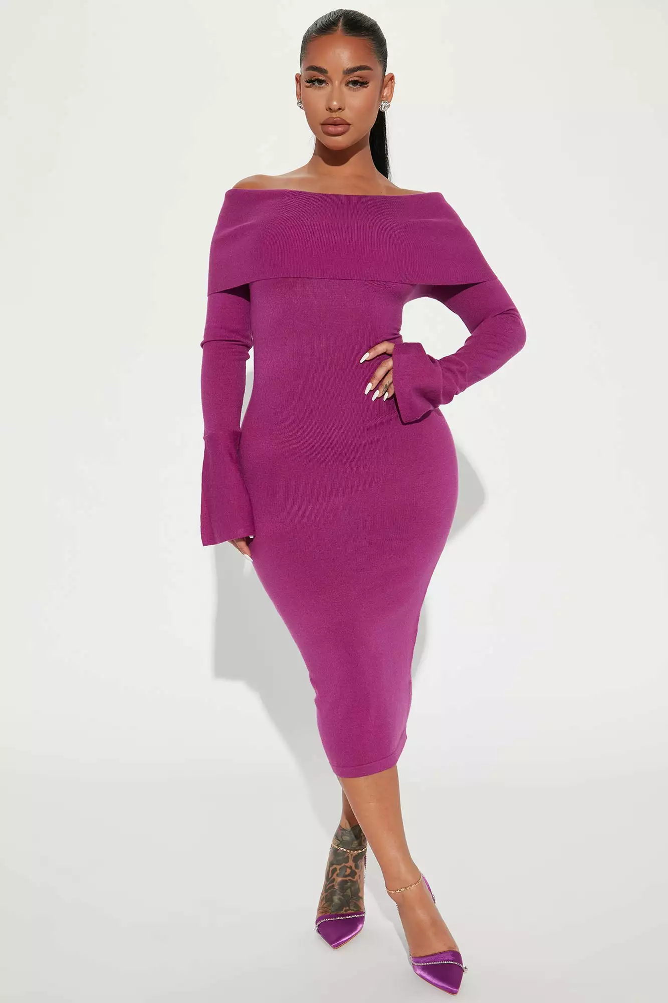 Fashion Nova Miana Sweater Midi Dress – Magenta