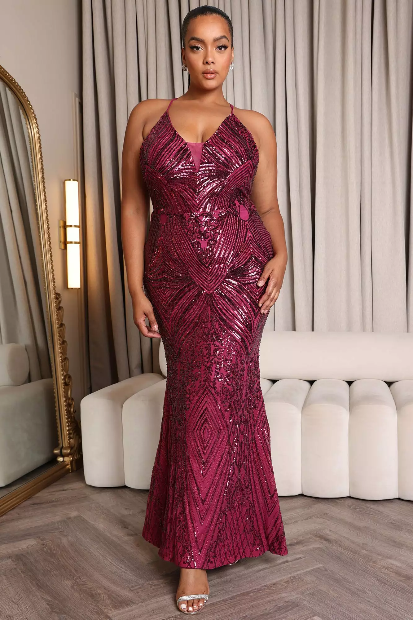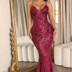 Fashion Nova Minding My Business Sequin Maxi Dress – Plum