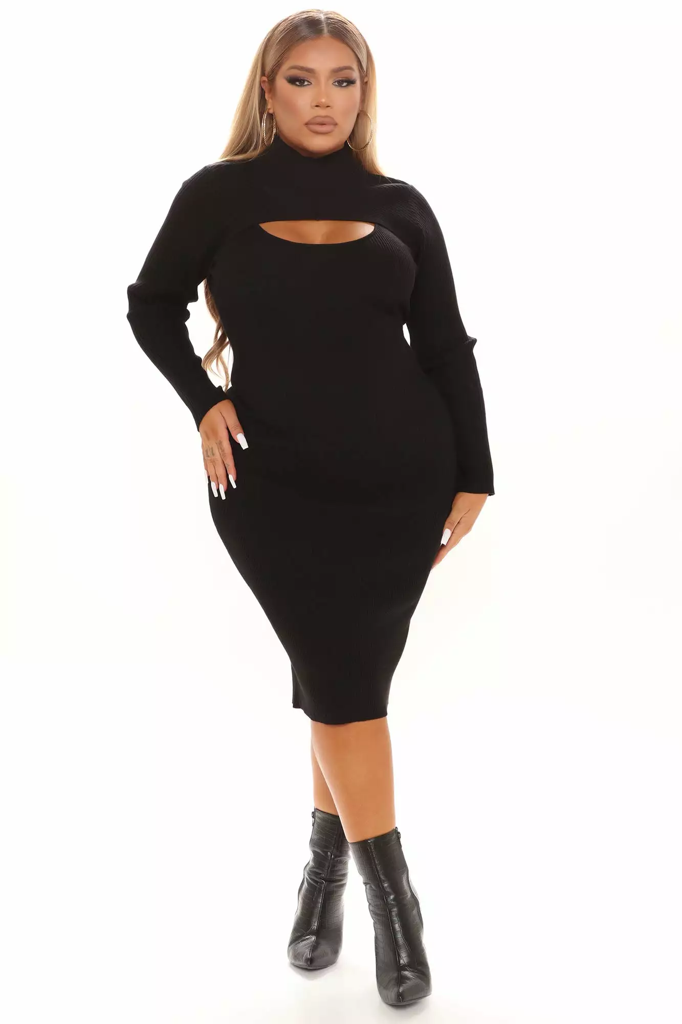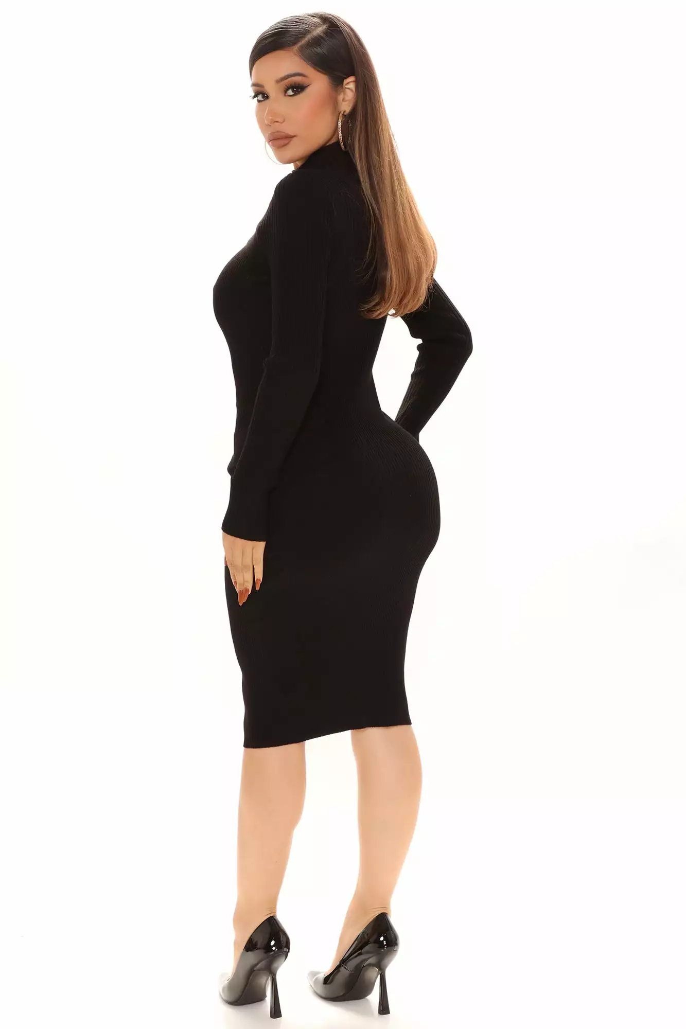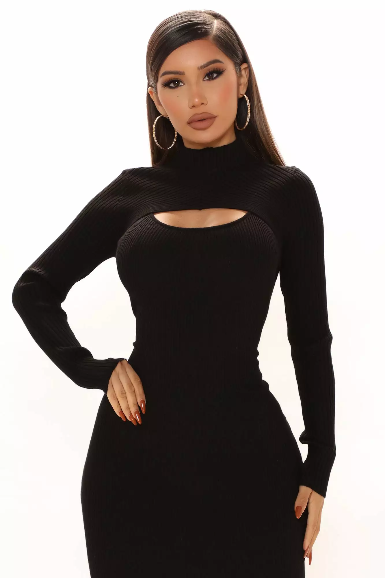 Fashion Nova Moments After Sweater Midi Dress – Black
