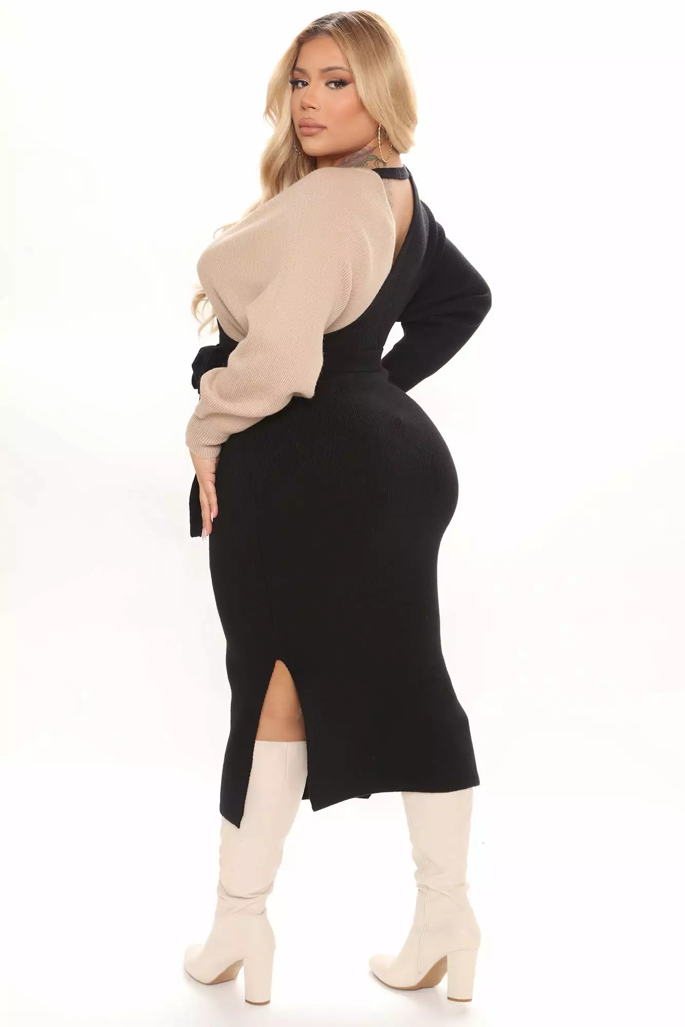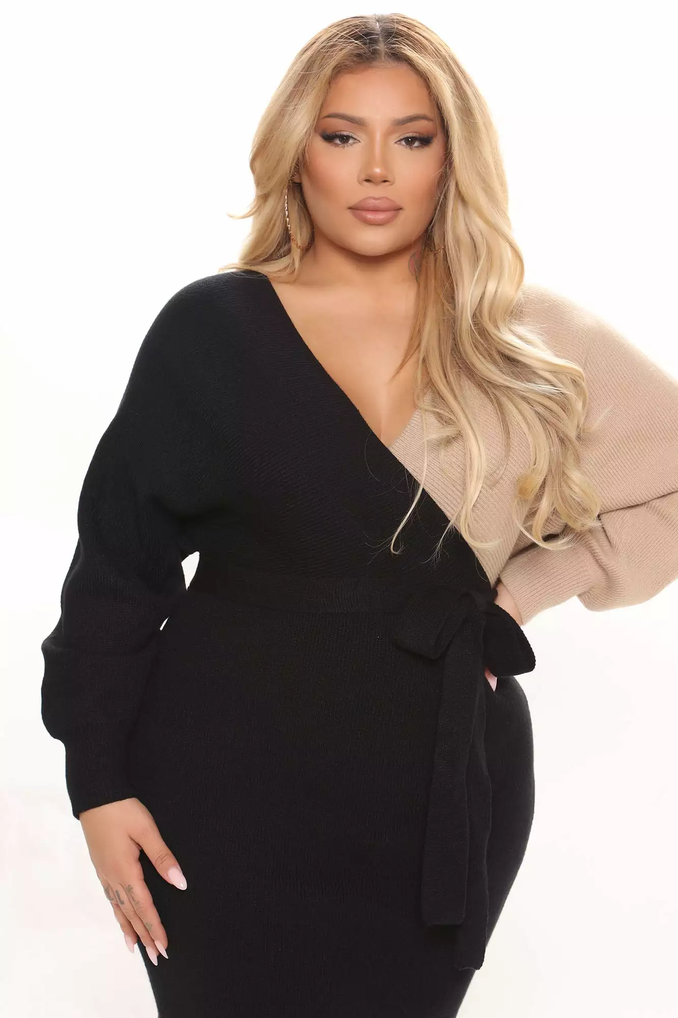 Fashion Nova Mona Colorblock Sweater Midi Dress – Black/combo