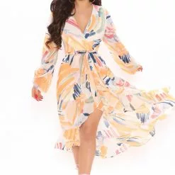 Fashion Nova Nadine Long Sleeve Midi Dress – Navy/combo