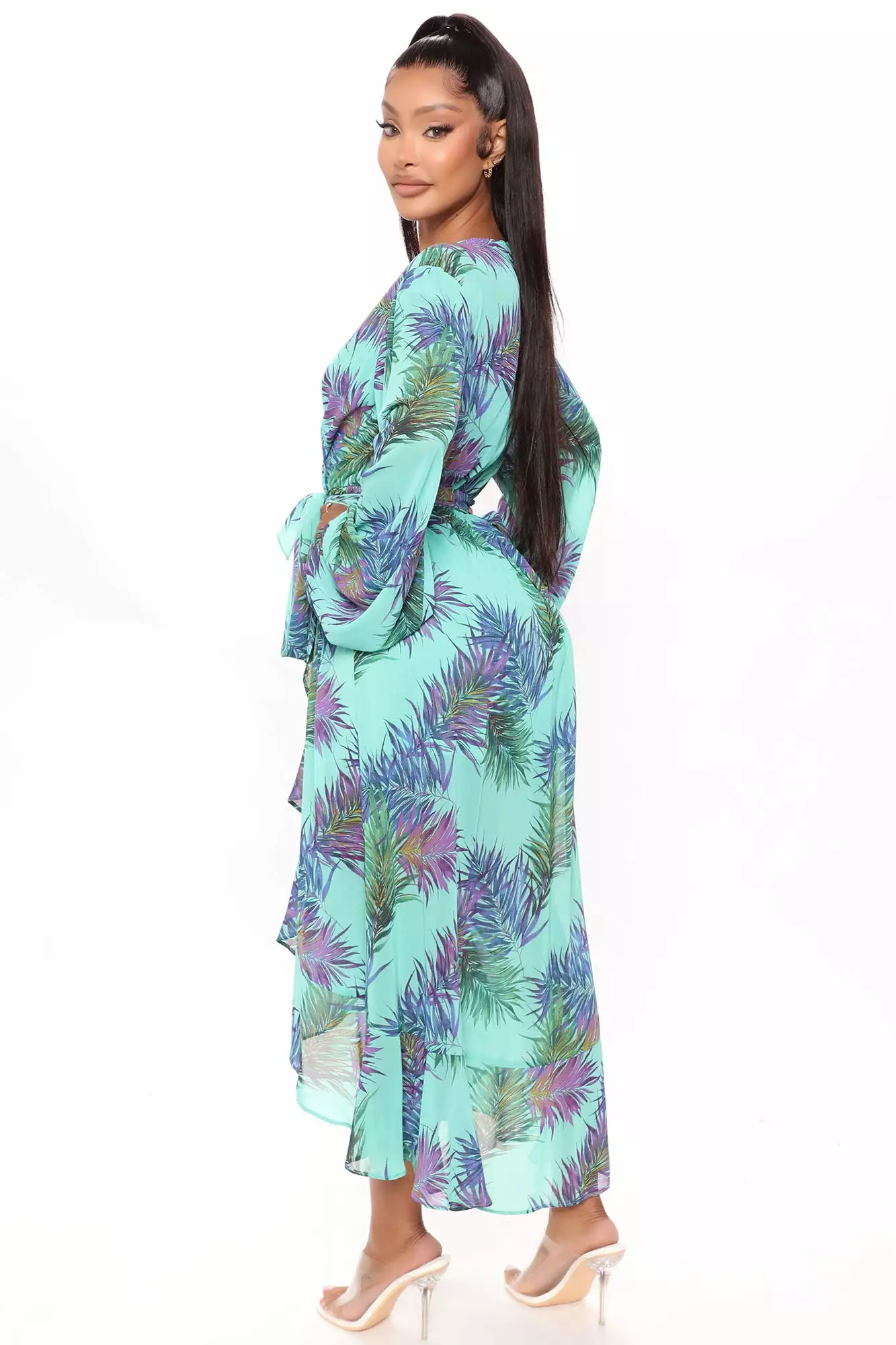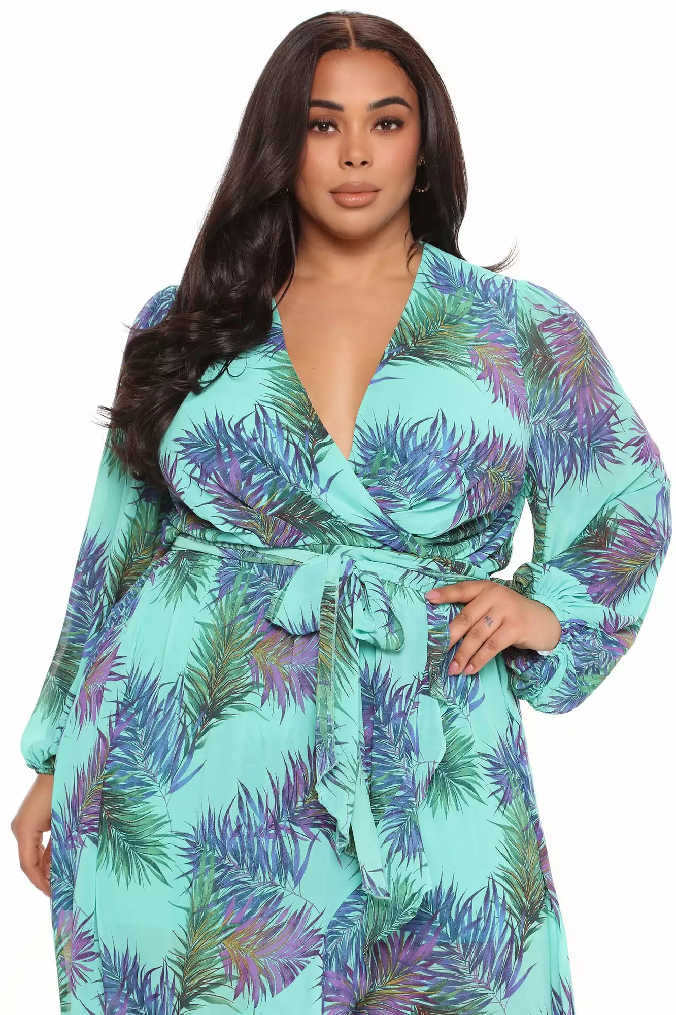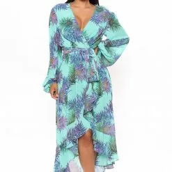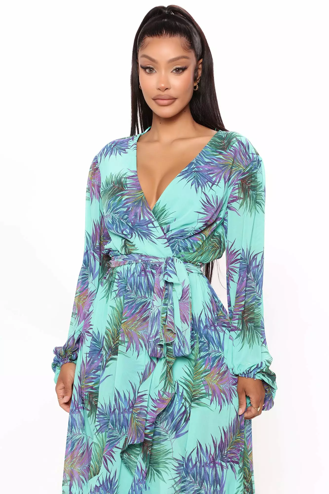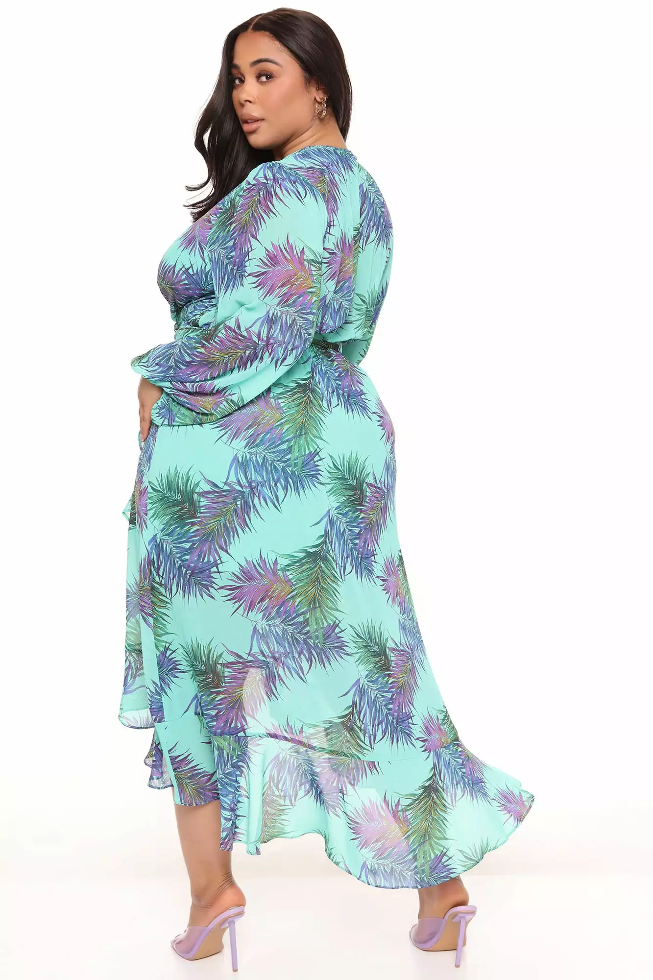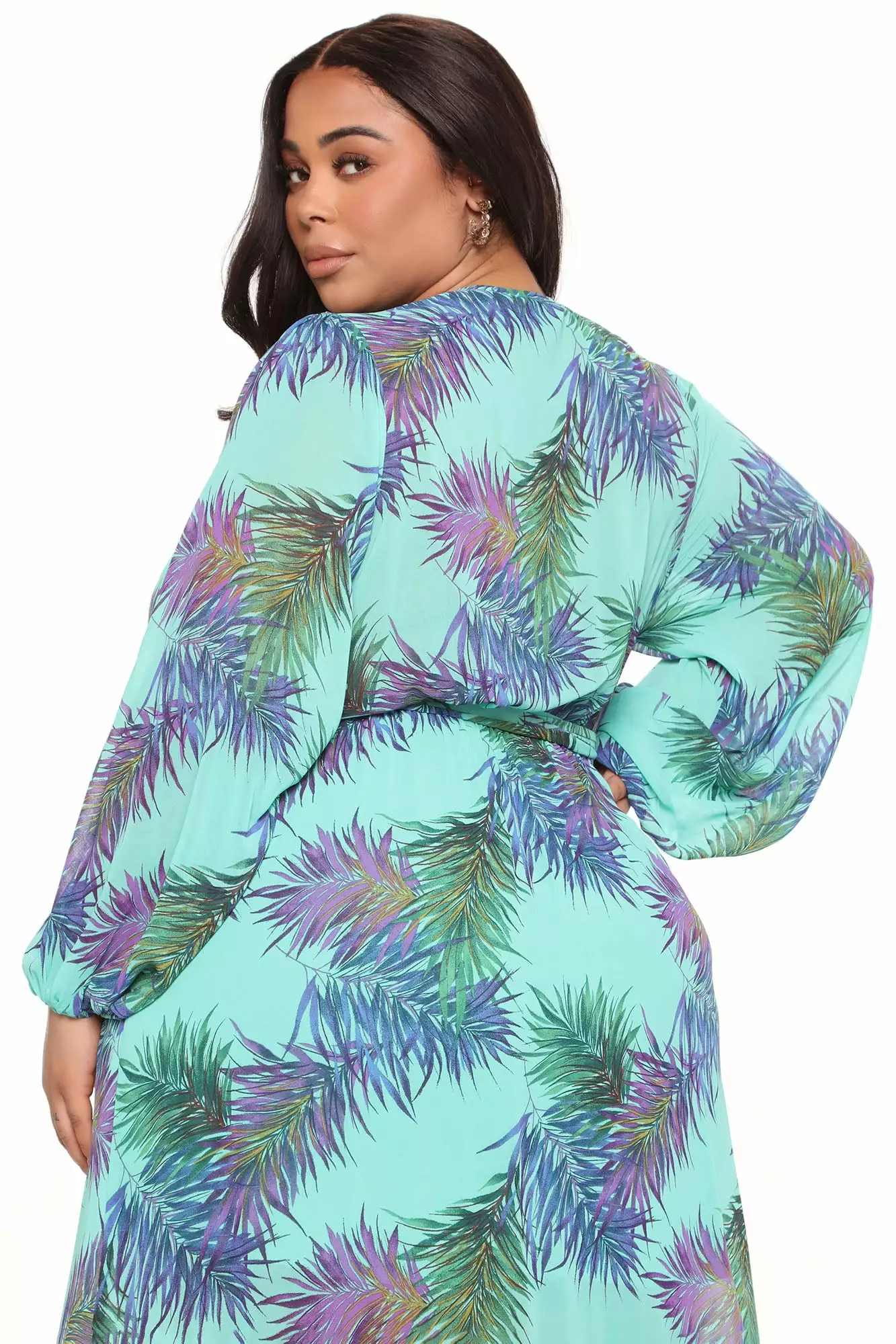 Fashion Nova Nadine Long Sleeve Midi Dress – Teal/combo