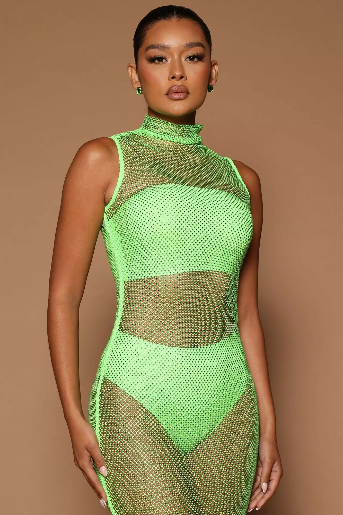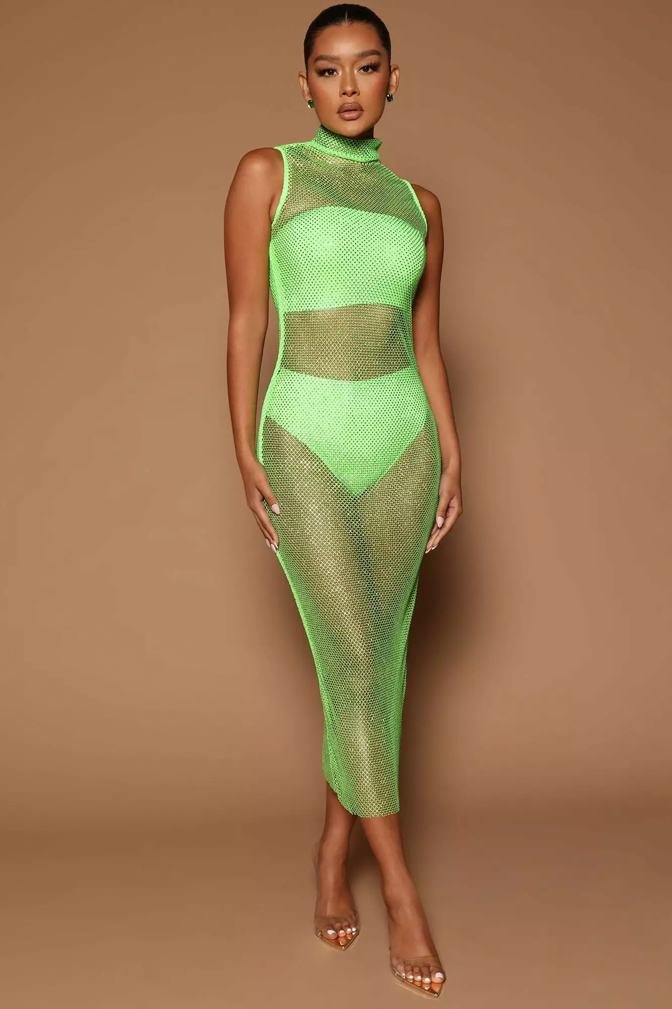 - Embellished Fishnet Midi Dress