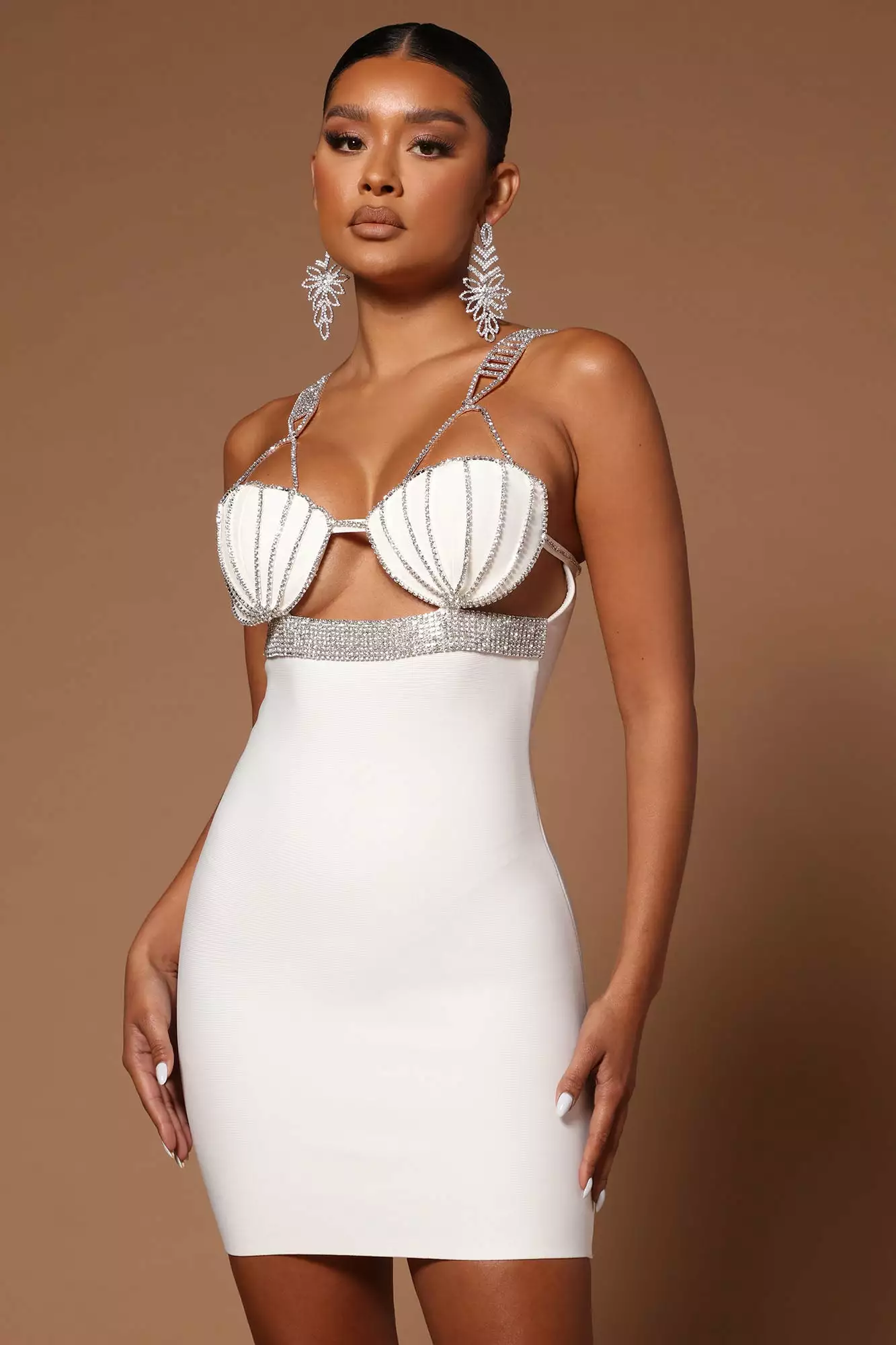 Fashion Nova Naomi Embellished Bandage Mini Dress – White