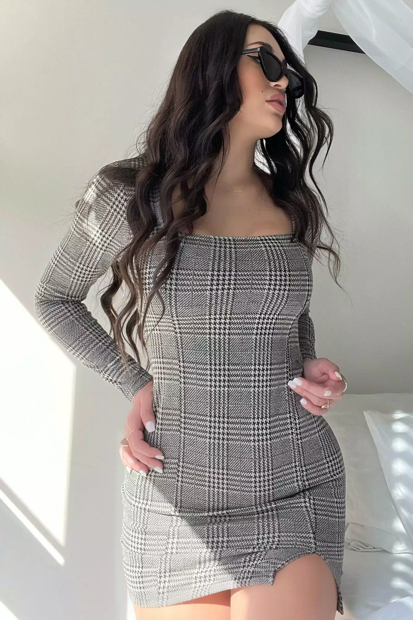 Fashion Nova New Boss Plaid Mini Dress – Black/combo