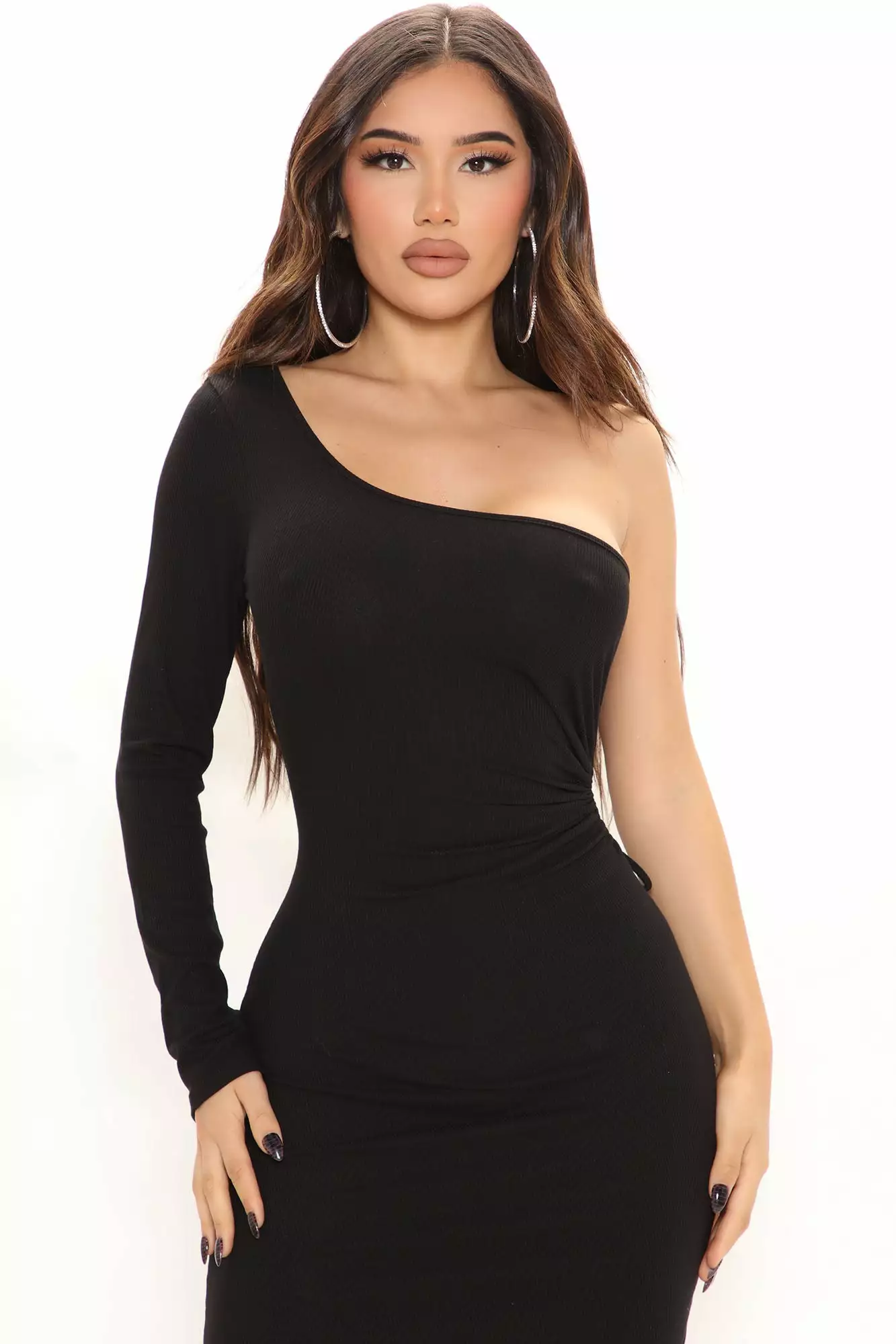 Fashion Nova Nichole Ribbed Midi Dress – Black
