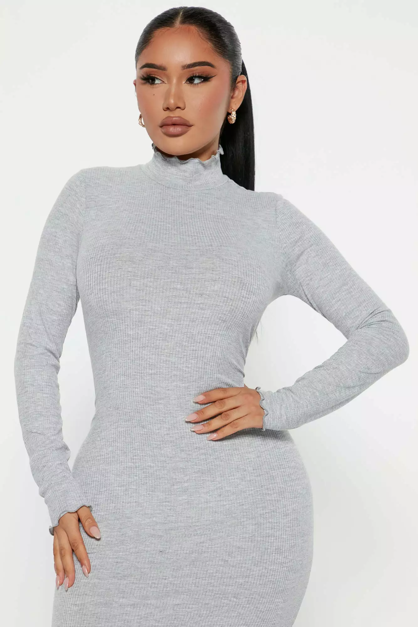 SKU: 6537510158460 Category: Midi Dresses Tags: All Promo, casualdresses, color:Heather Grey, ColorFam-Gray, Dresses, length:Midi, Long Sleeve, Midi, neckline:Mock Neck