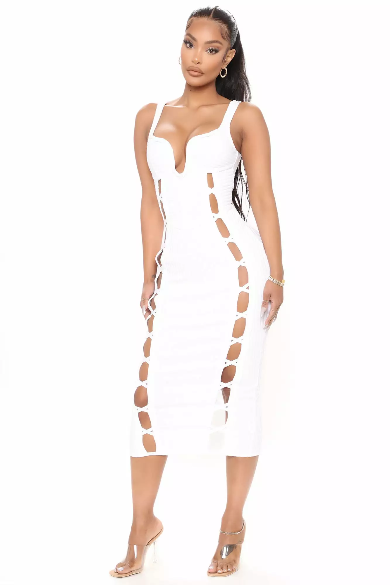 Fashion Nova No Cuts Given Bandage Midi Dress – White