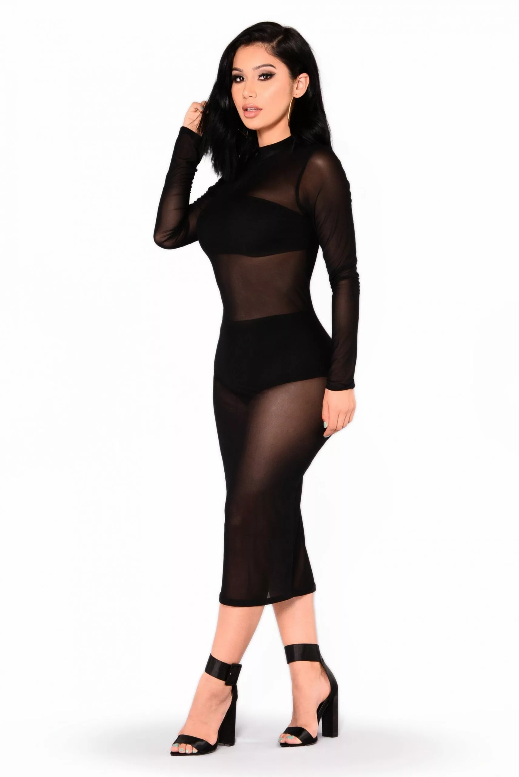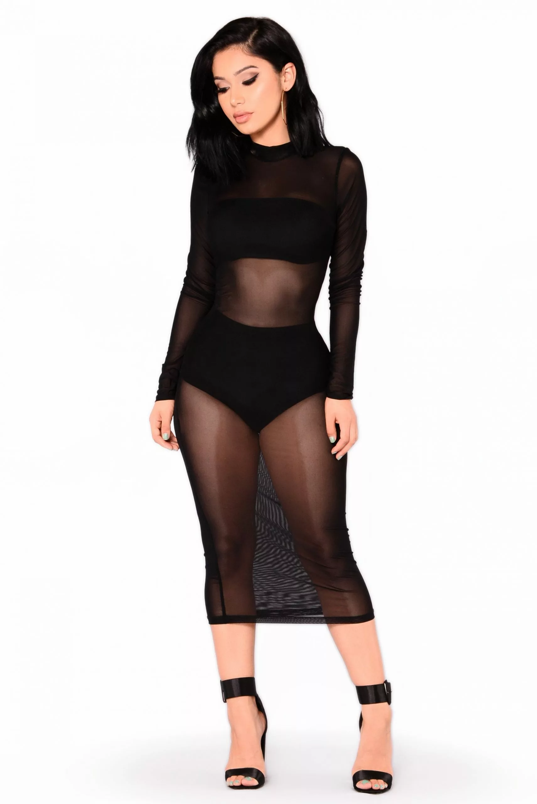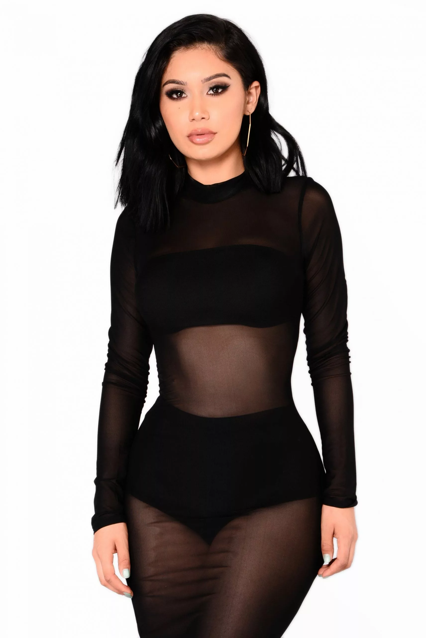 Fashion Nova Noelle Mesh Dress – Black