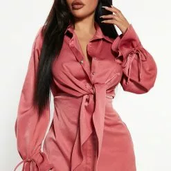 Fashion Nova Nonstop Satin Shirt Dress – Rose