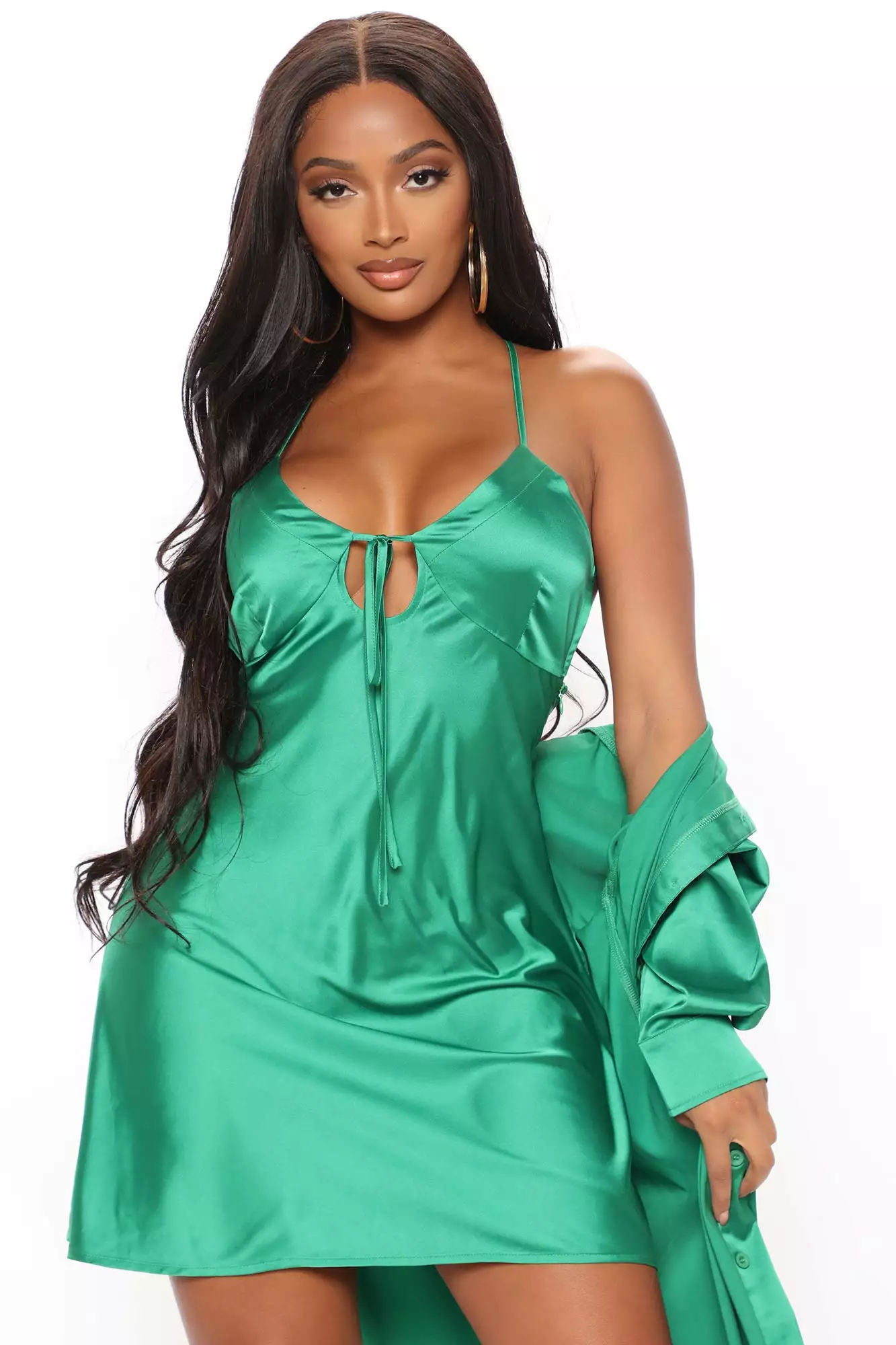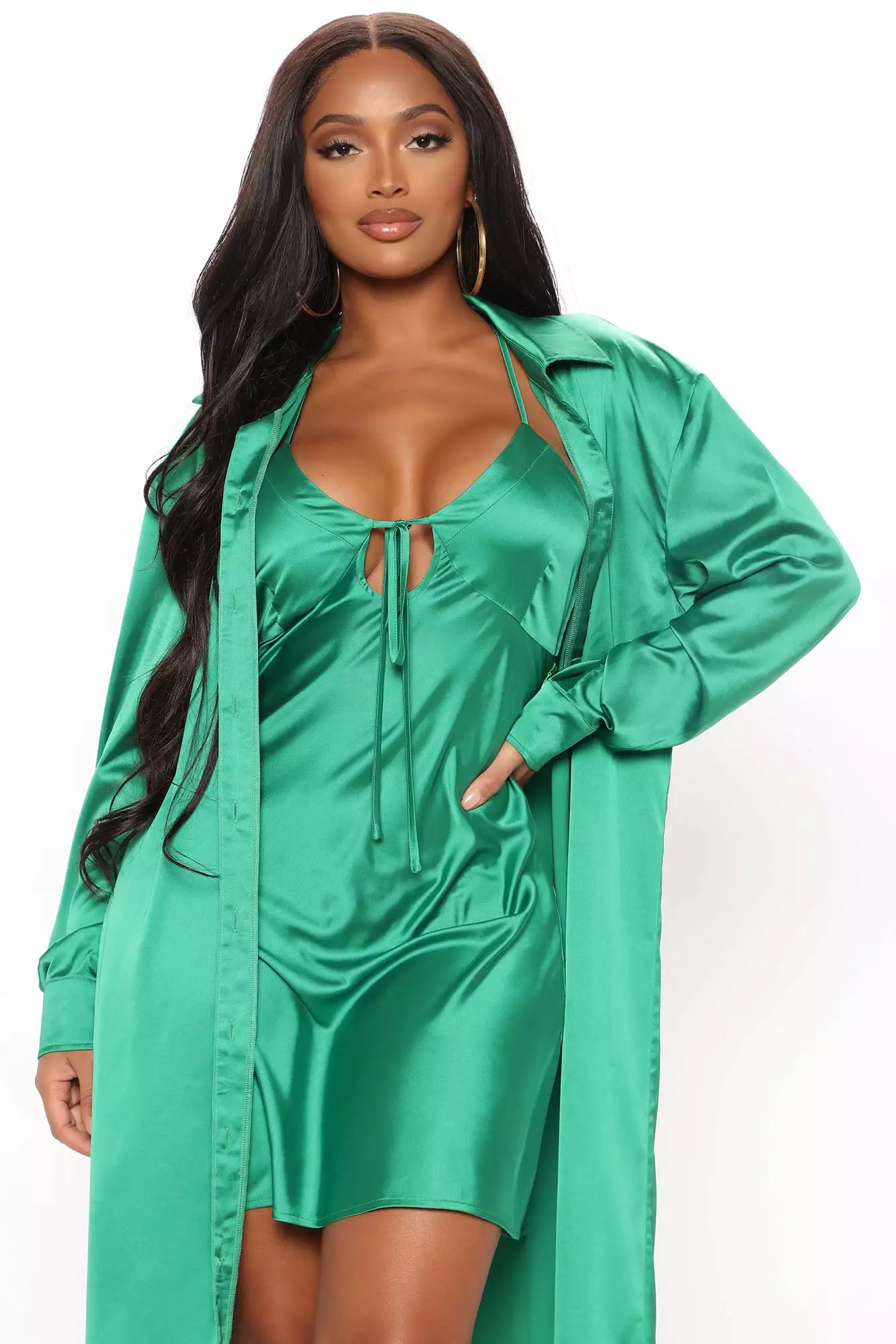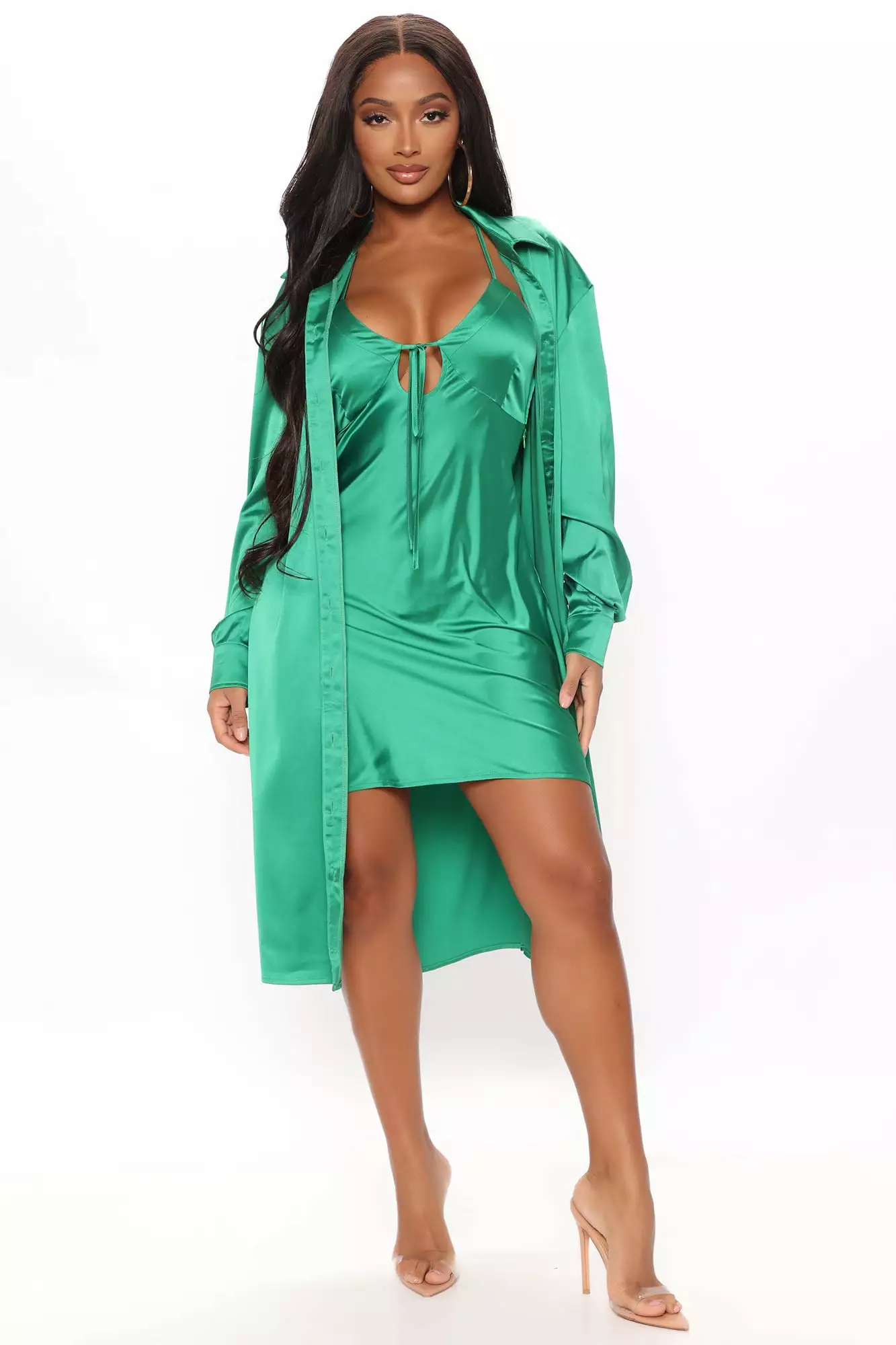 Fashion Nova On Tour Satin Dress Set – Kelly Green