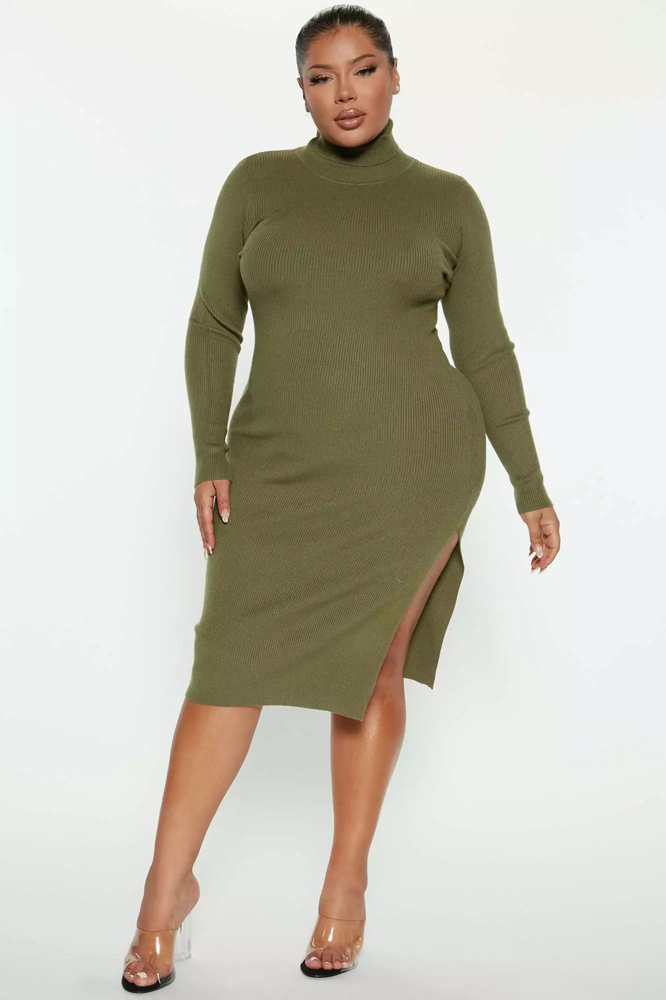 Fashion Nova One Chance Sweater Midi Dress – Olive