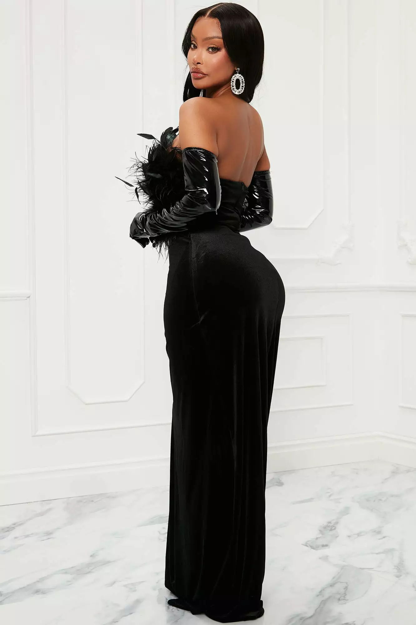 Fashion Nova One Night Only Velvet Maxi Dress – Black