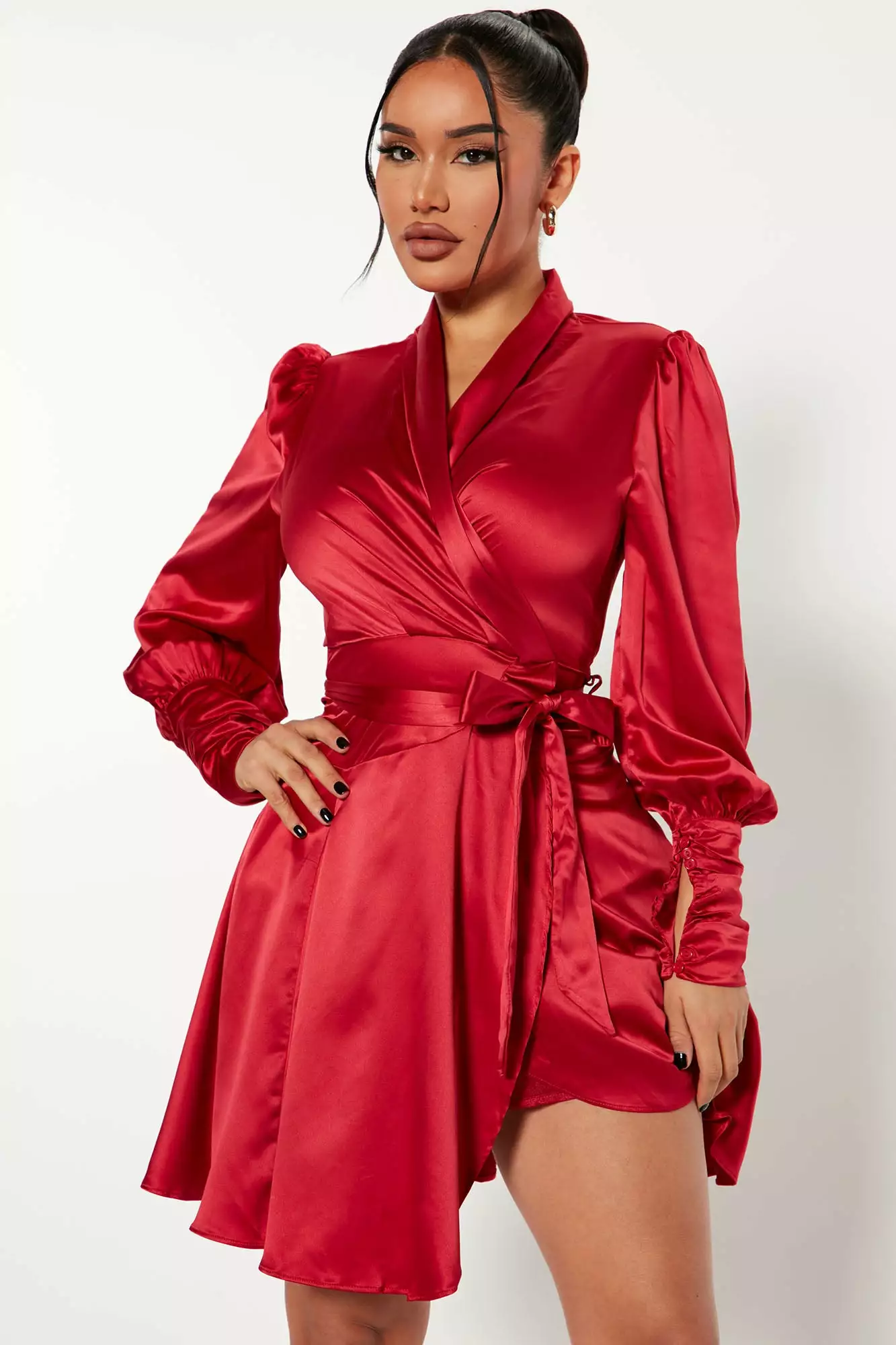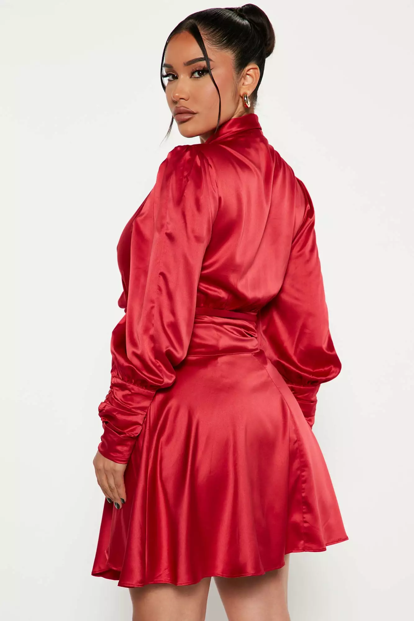 Fashion Nova Tall Only Love Satin Mini Dress – Red