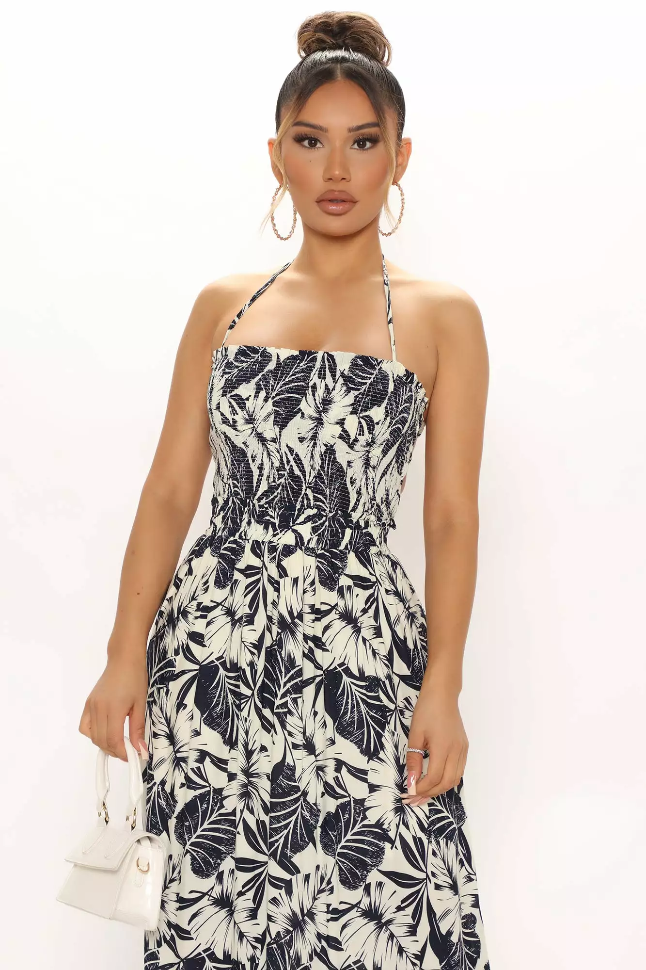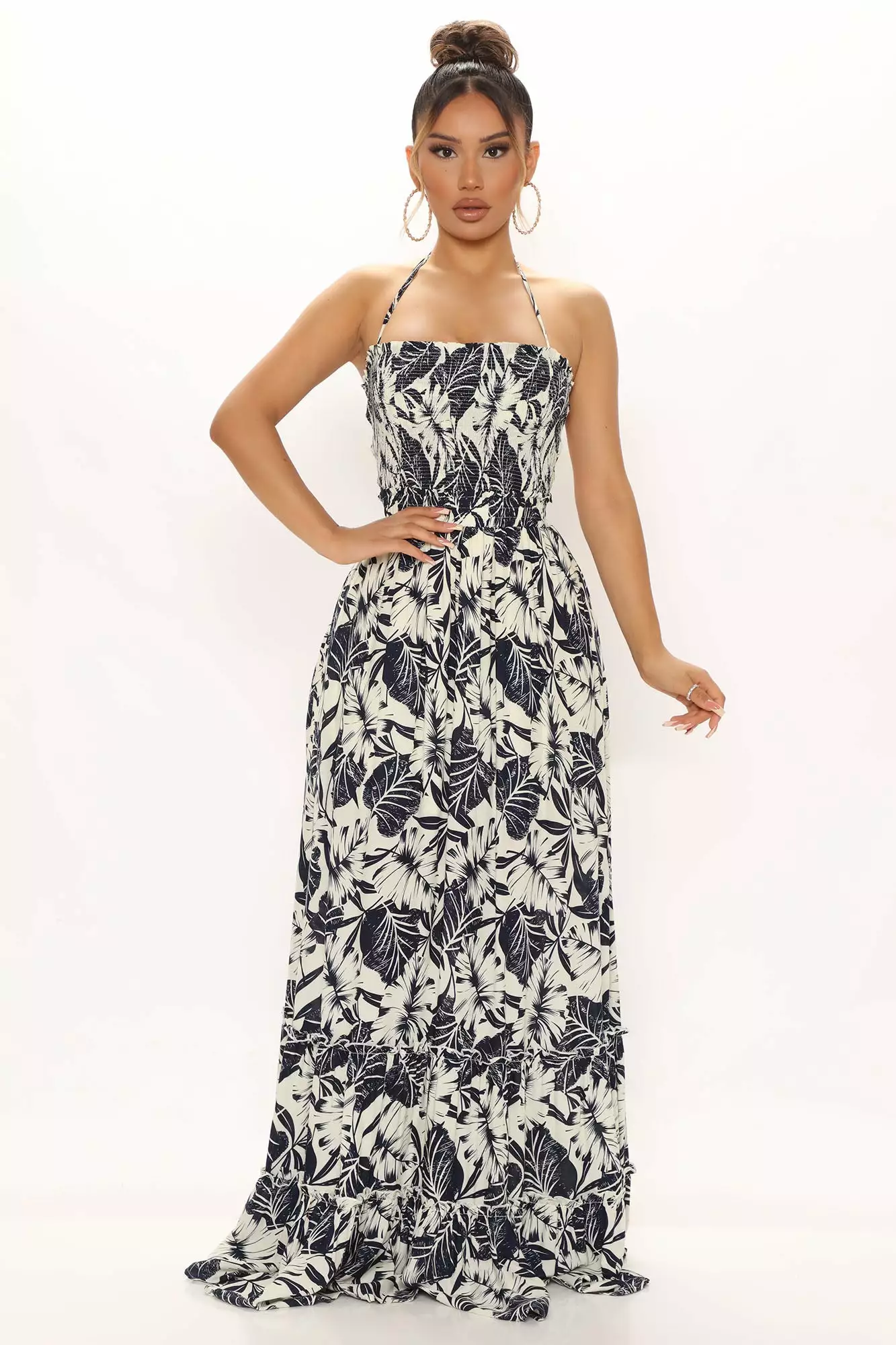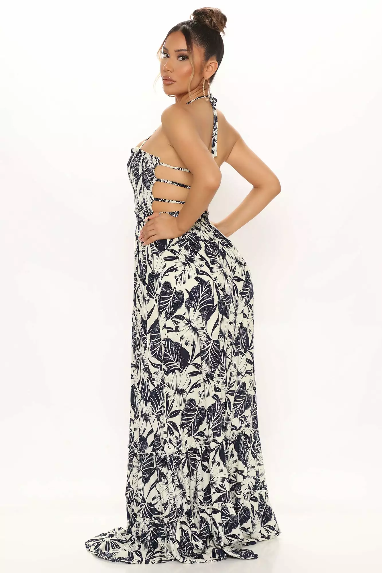 Fashion Nova Palm Tree Views Maxi Dress – Navy/combo