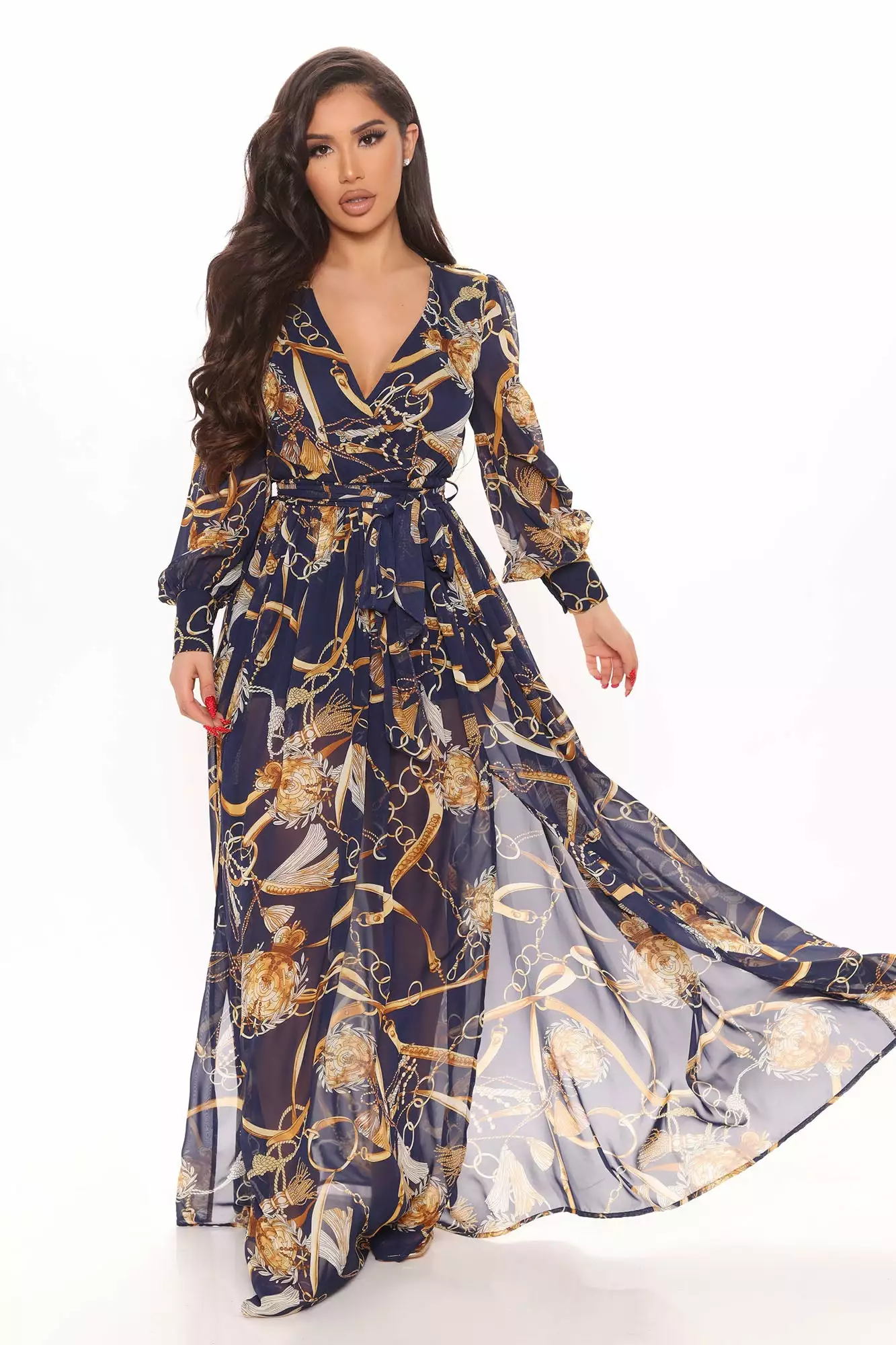 Fashion Nova Park Avenue Deluxe Maxi Dress – Navy