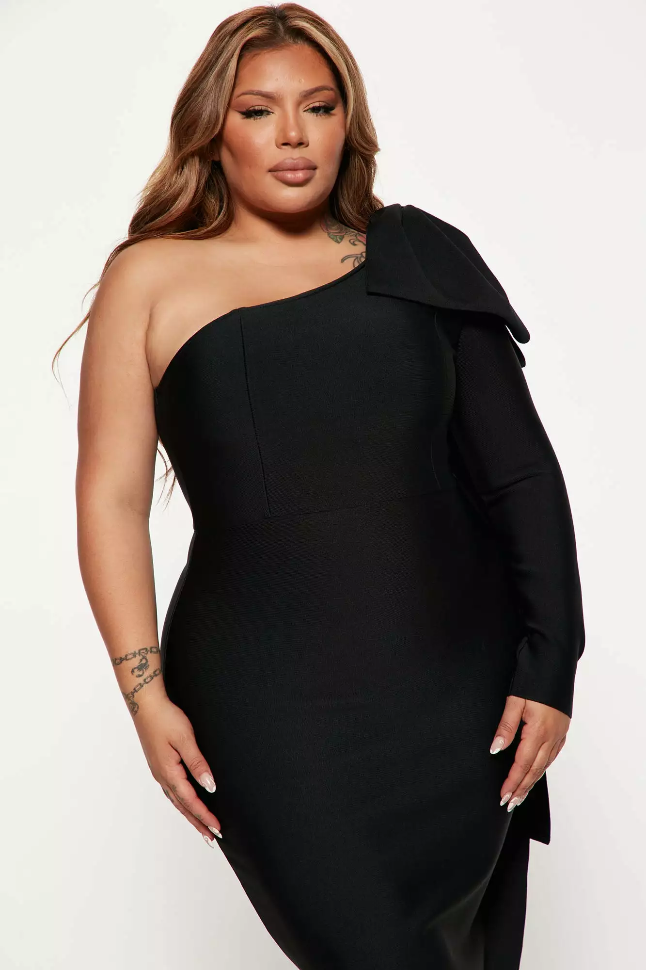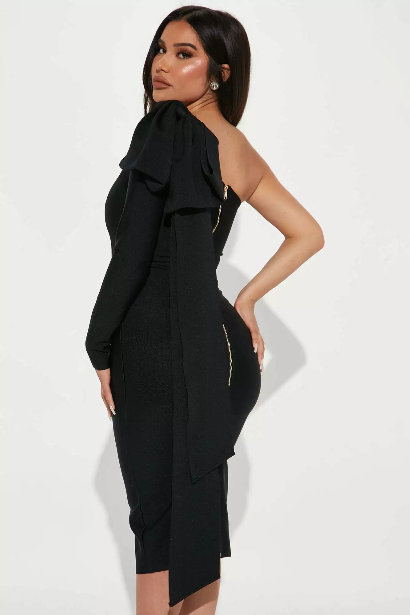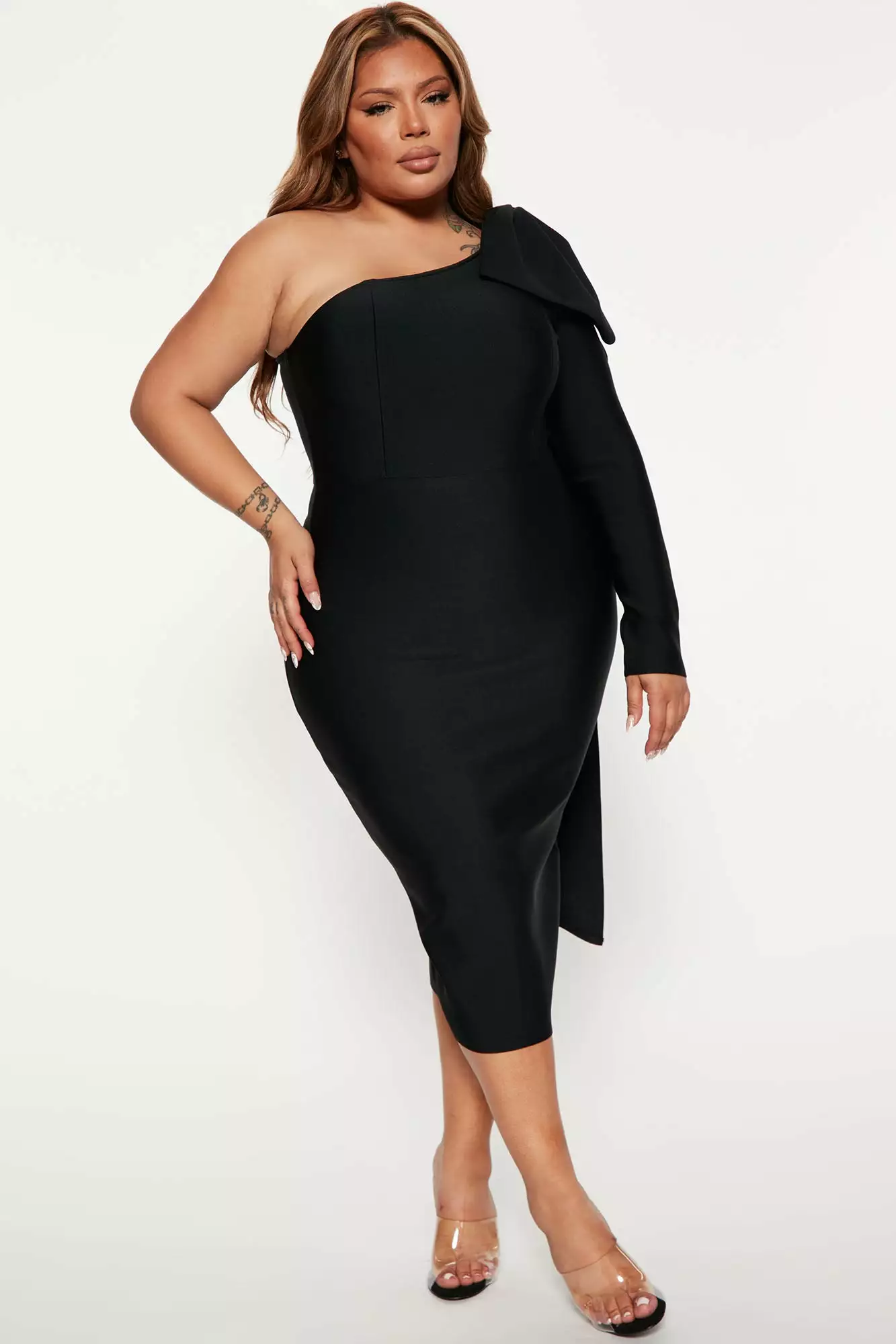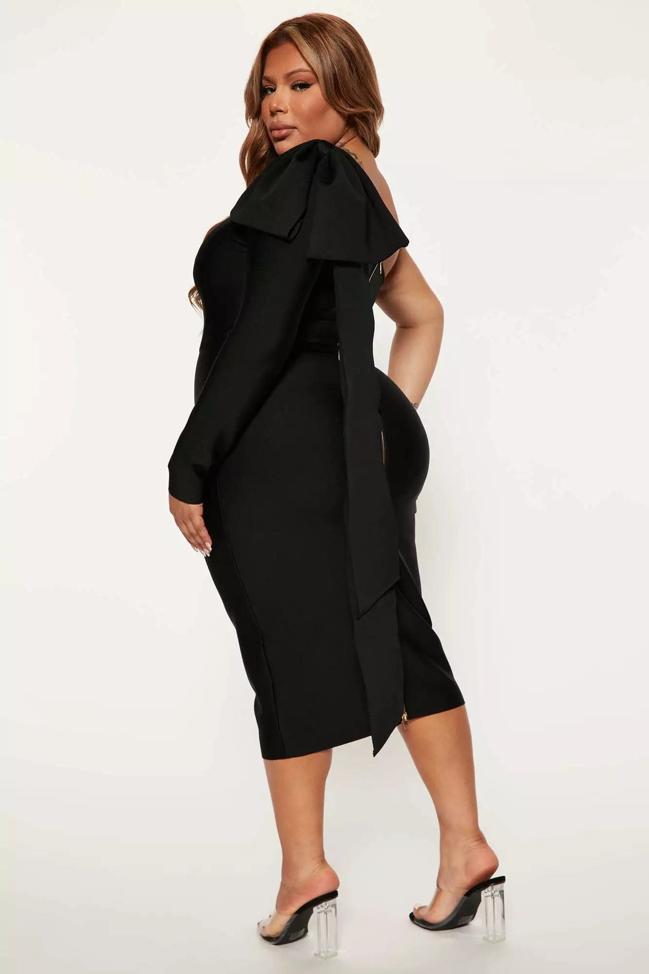 Fashion Nova Perfectly Gifted Bandage Midi Dress – Black