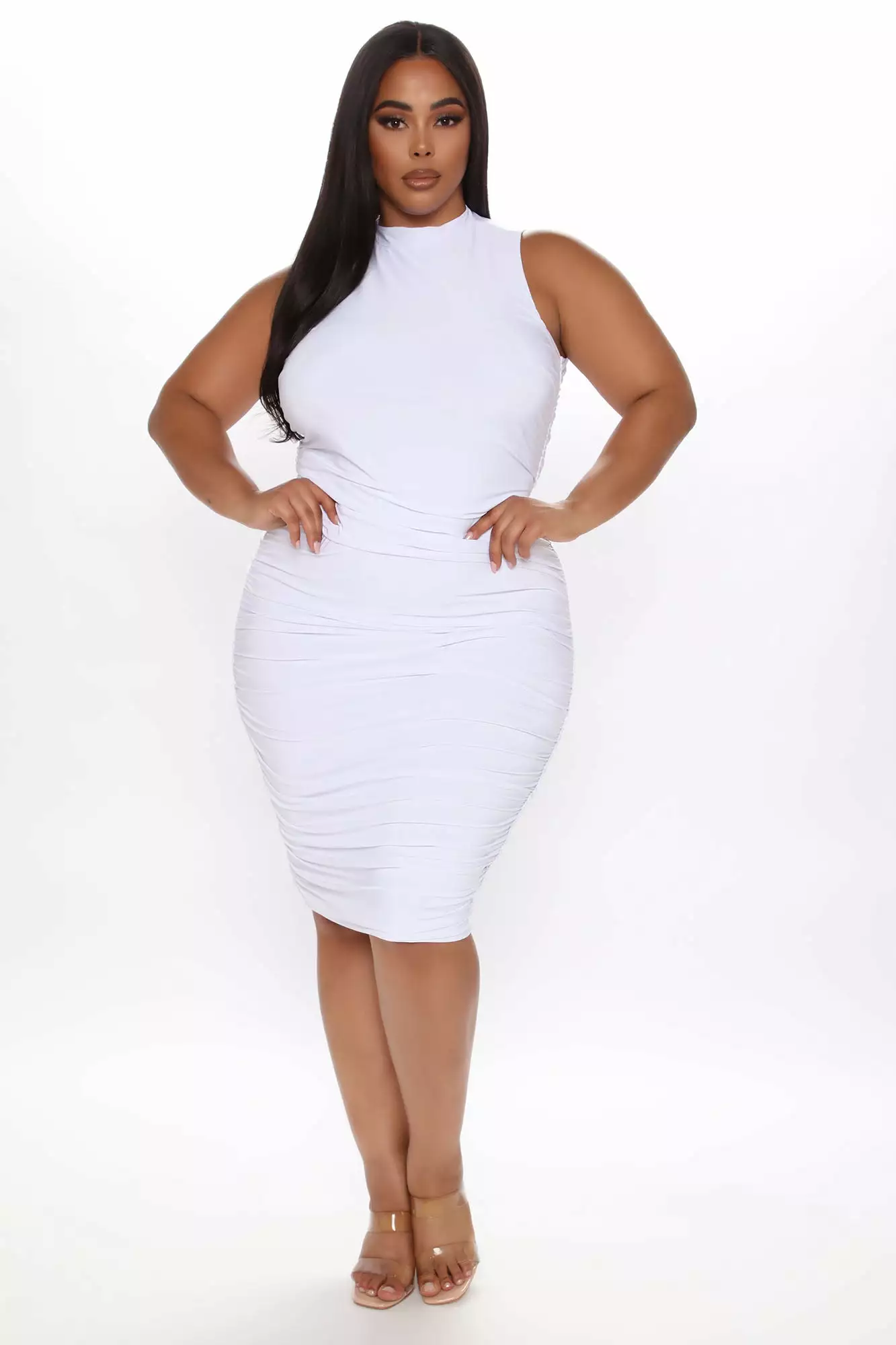 Fashion Nova Perfectly Polished Ruched Midi Dress – White