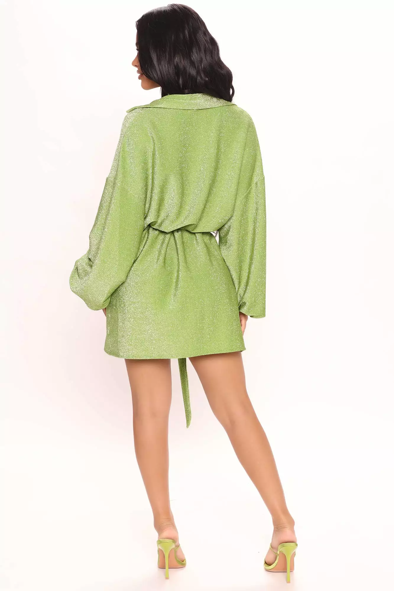 Fashion Nova Petite High Attention Shirt Dress – Green