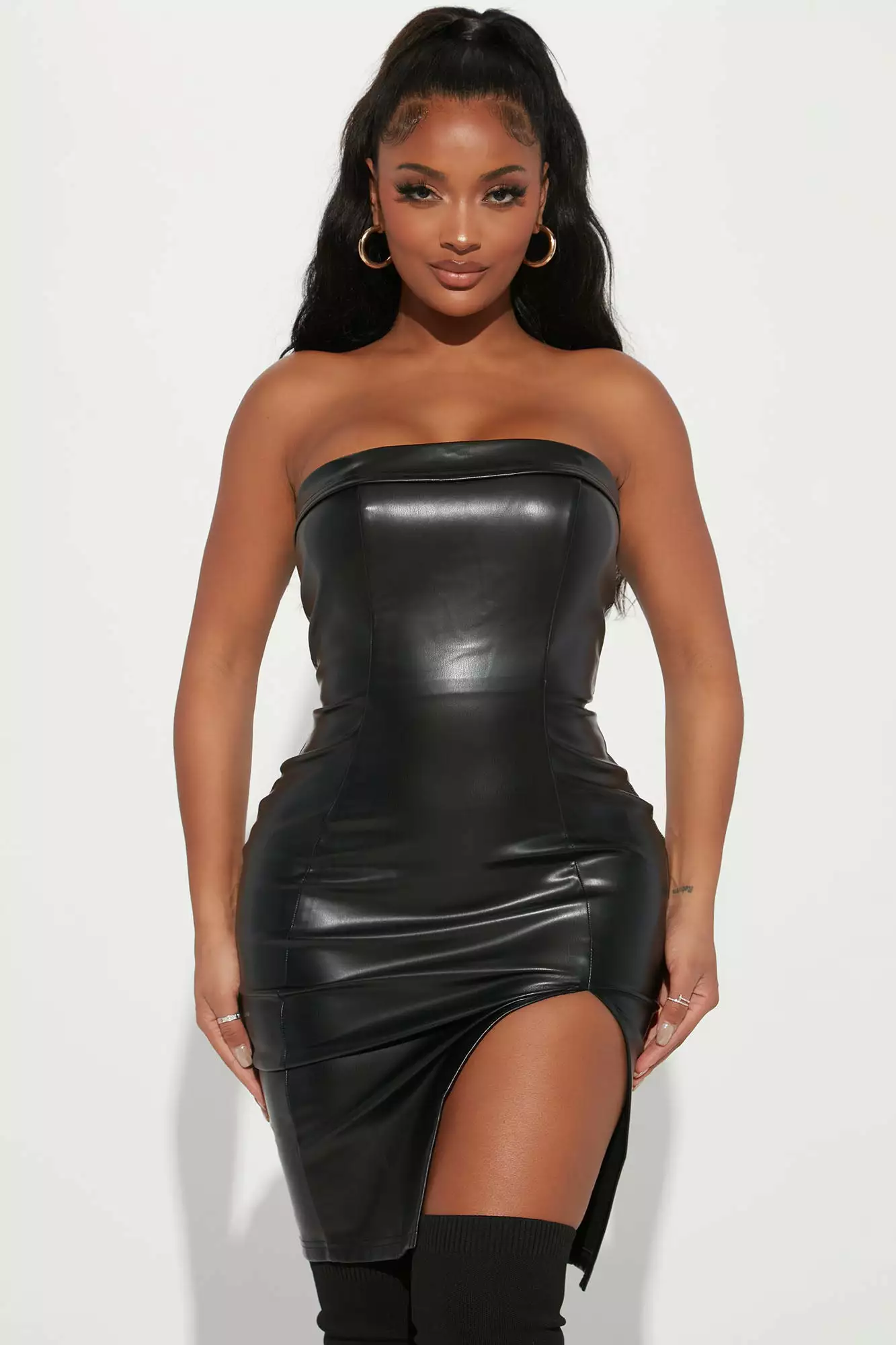 - Pleather Midi Dress