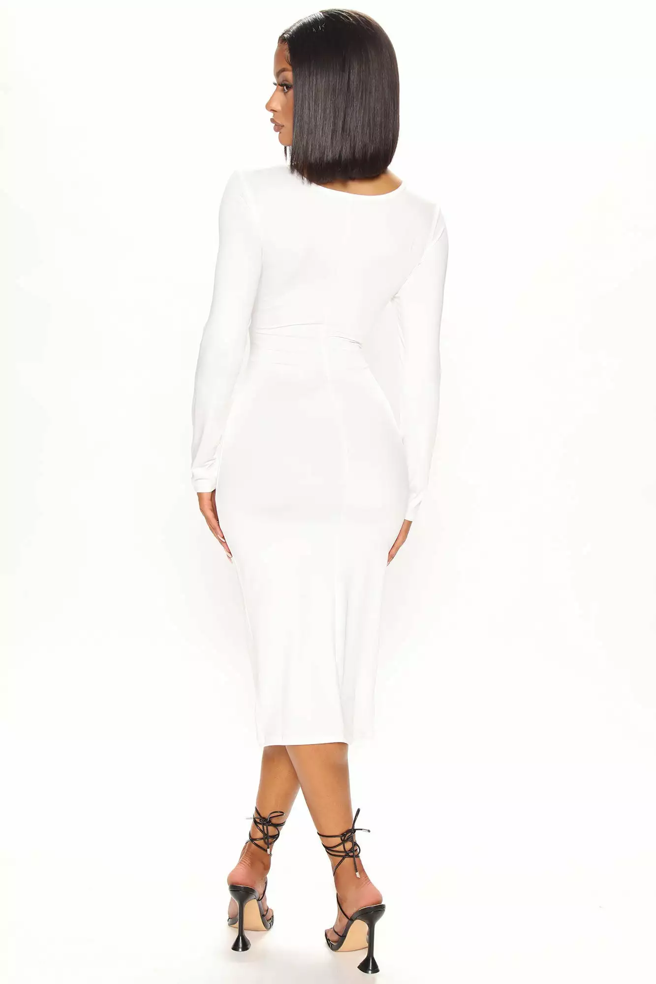 Fashion Nova Pierce My Heart Long Sleeve Midi Dress – White