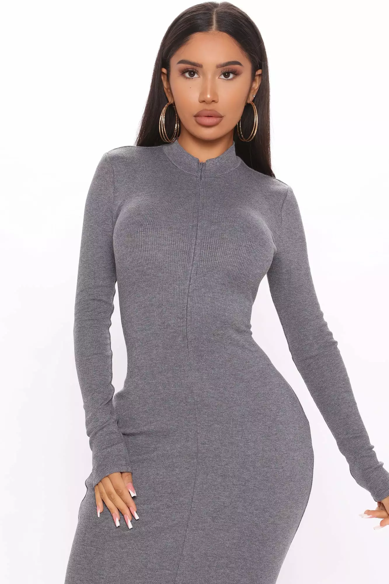 Fashion Nova Pour Some Wine Sweater Midi Dress – Charcoal