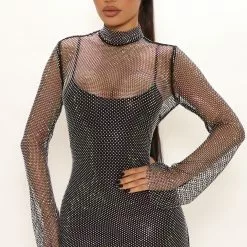 Fashion Nova Priscilla Embellished Maxi Dress – Black