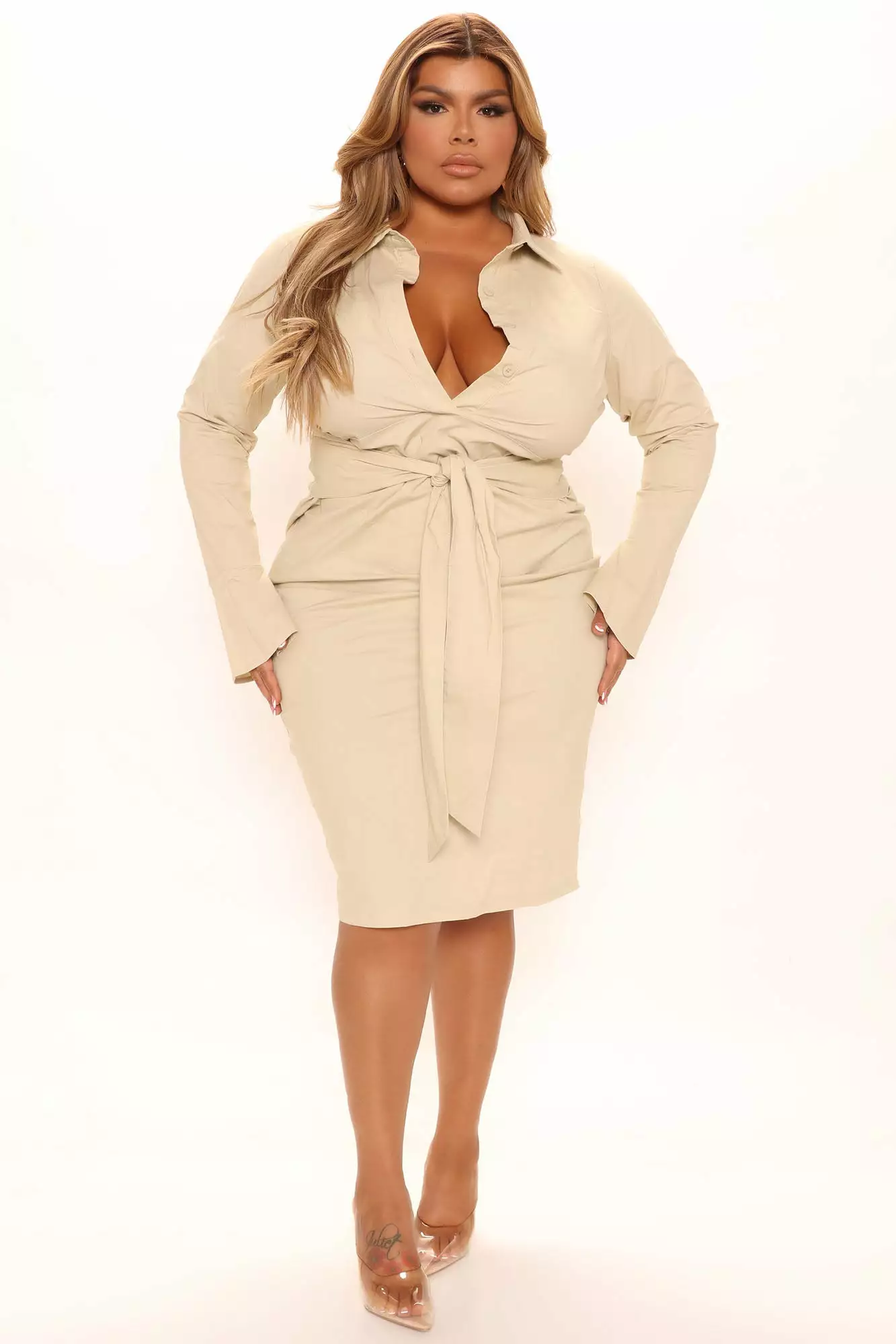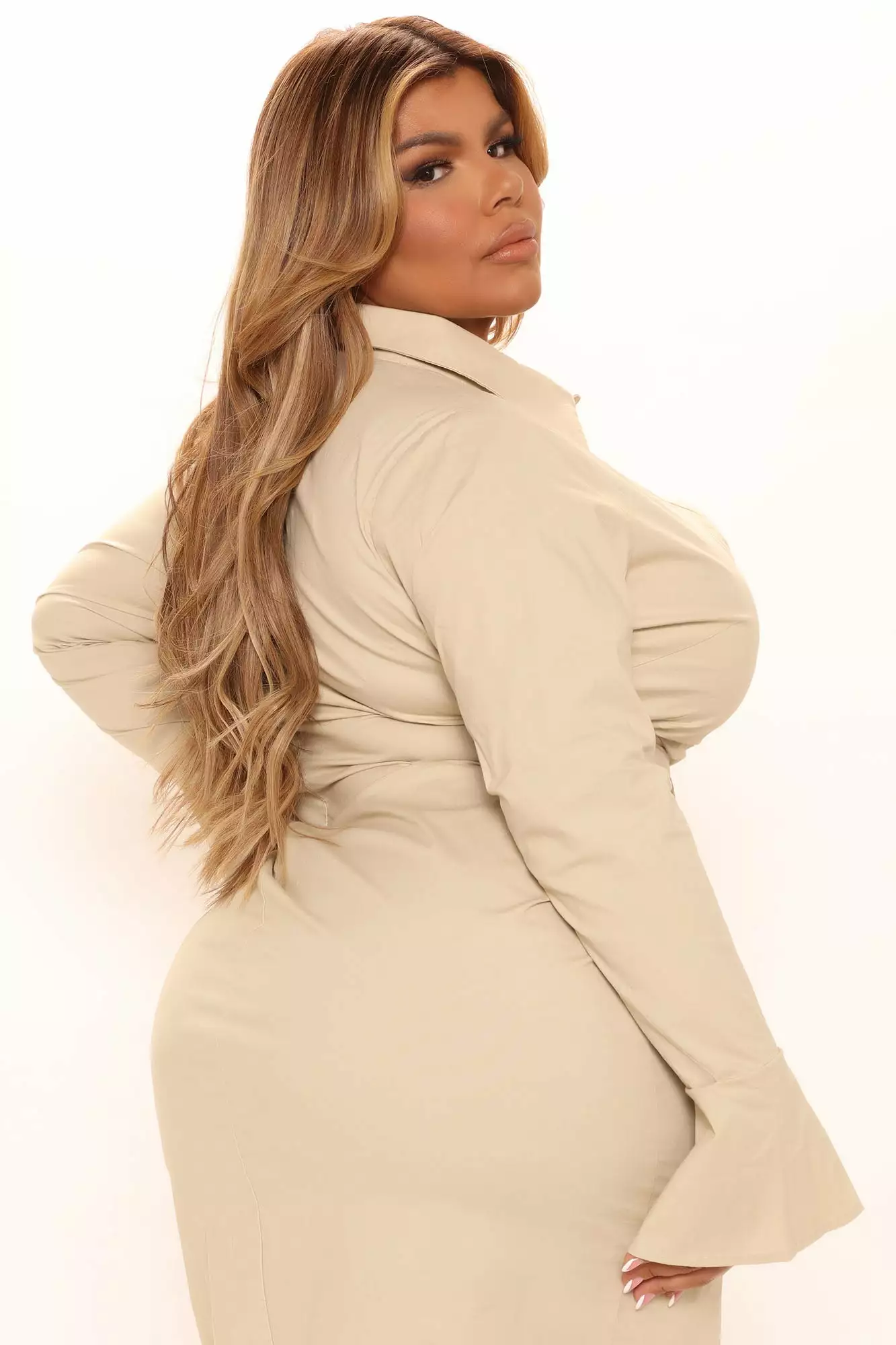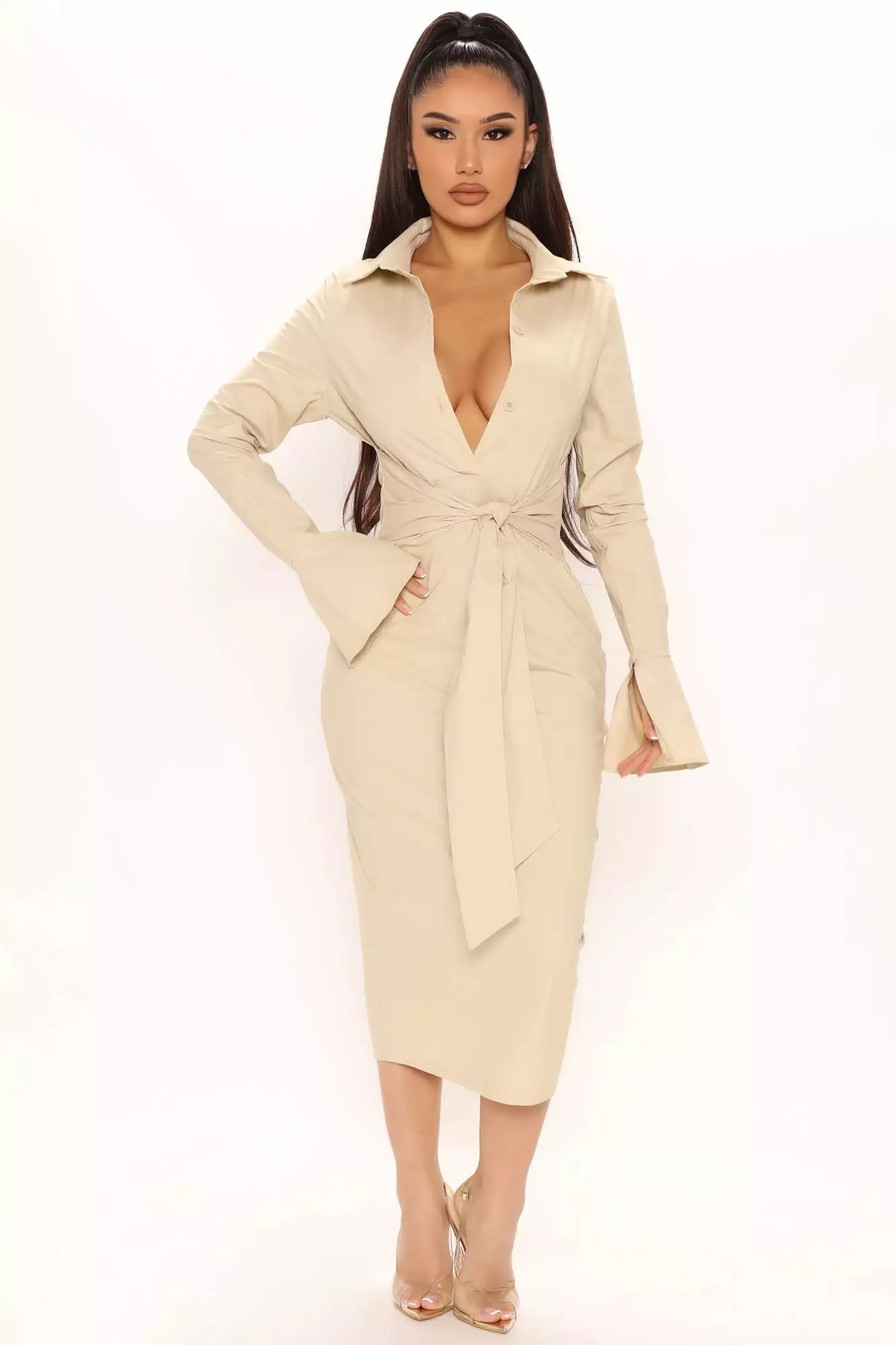 Fashion Nova Priyah Poplin Midi Dress – Taupe
