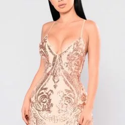 Fashion Nova Ashe Sequin Dress – Rose Gold