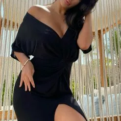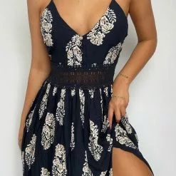 Fashion Nova Holy Slit Dress – Navy/Taupe