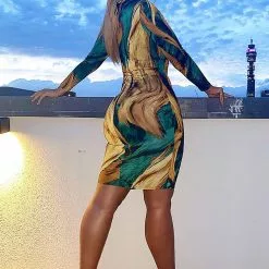 Fashion Nova Fine Arts Midi Dress – Green/Combo