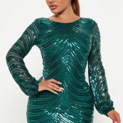 Fashion Nova Moonlight Sequin Midi Dress – Emerald