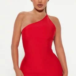 Fashion Nova Marlen Metallic Bandage Mini Dress – Red